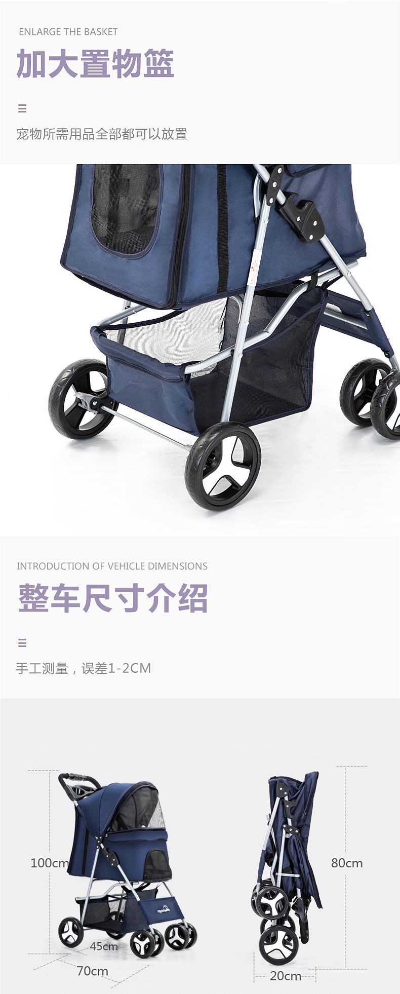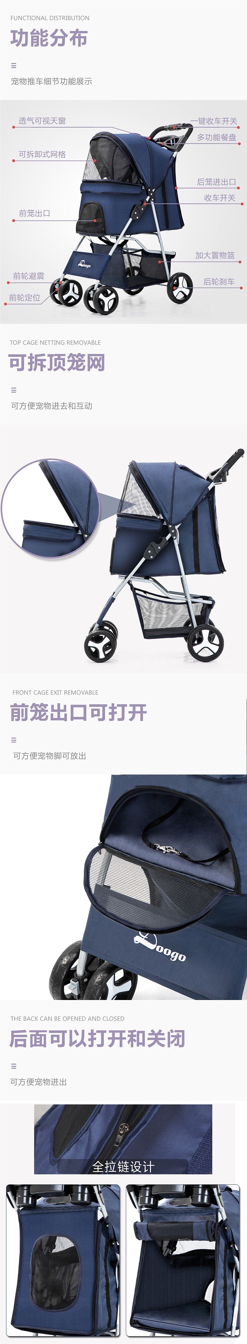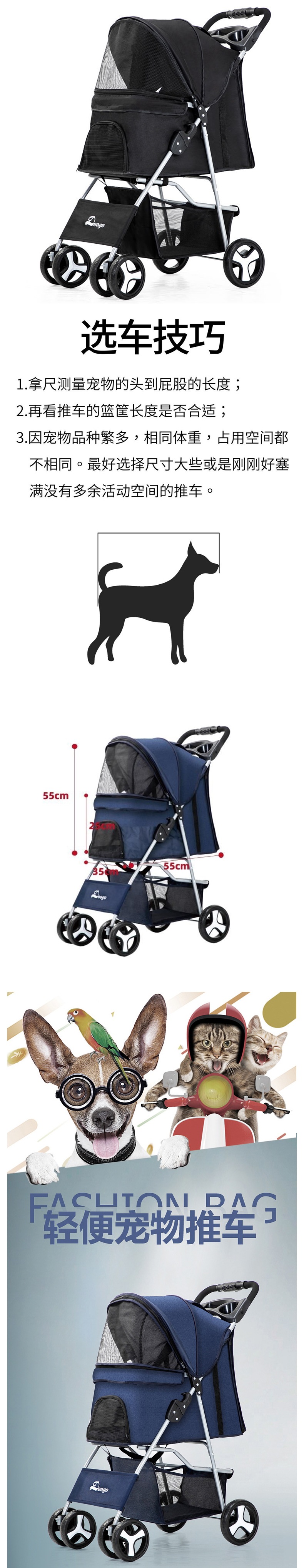 애완동물 유모차 고양이 유모차 외출 유모차 테디 경량 접이식스토어 가기