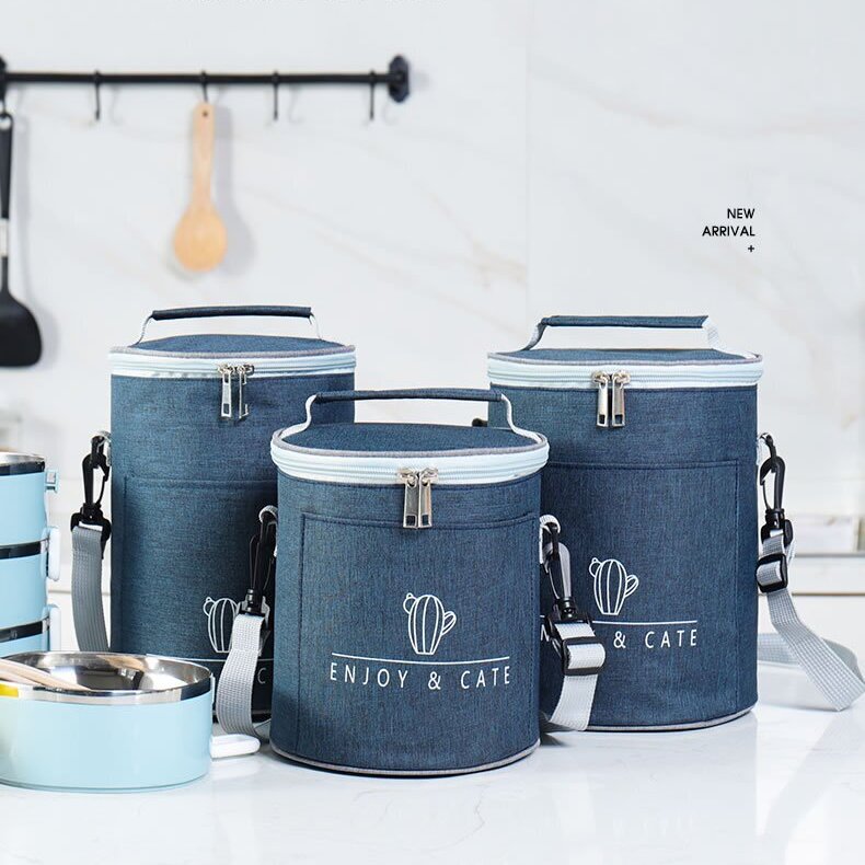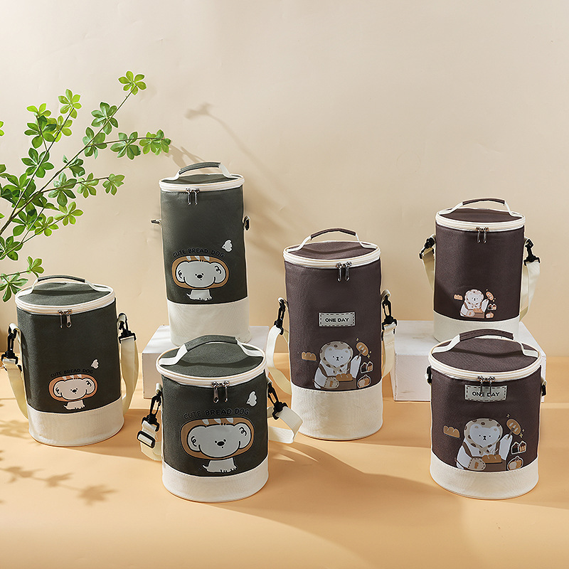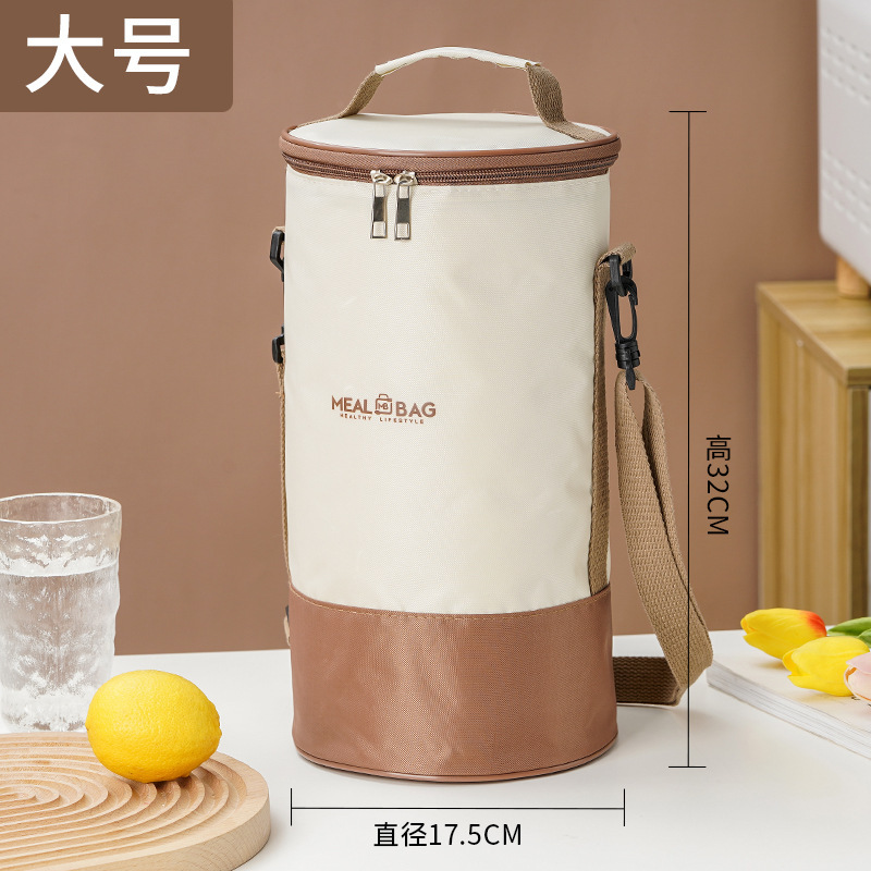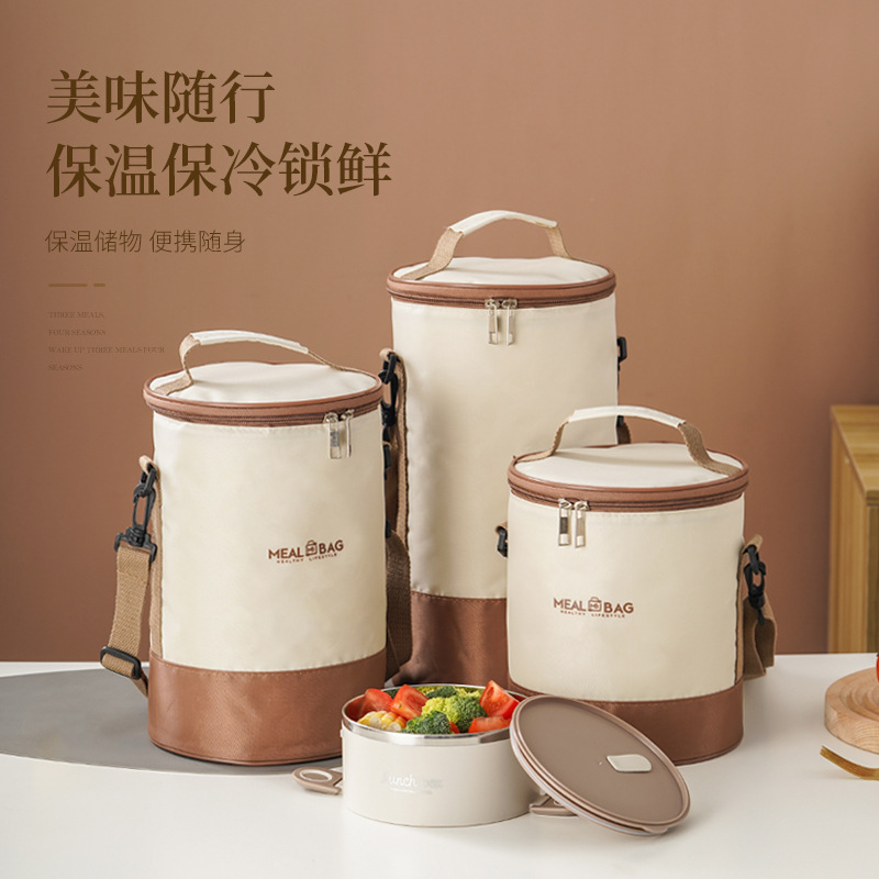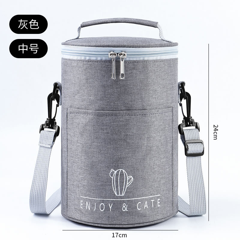 직원과 학생을 위한 둥근 원통형 단열 도시락 가방, 도시락 가방, 도시락 가방, 두껍고 방수스토어 가기