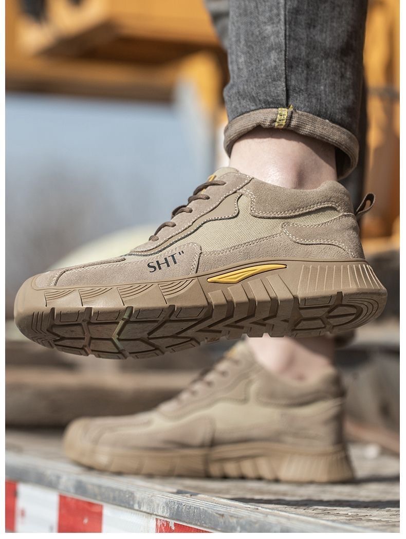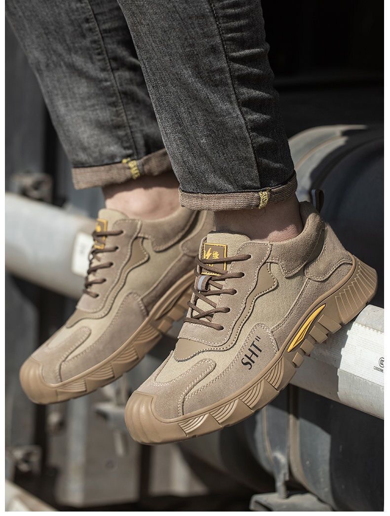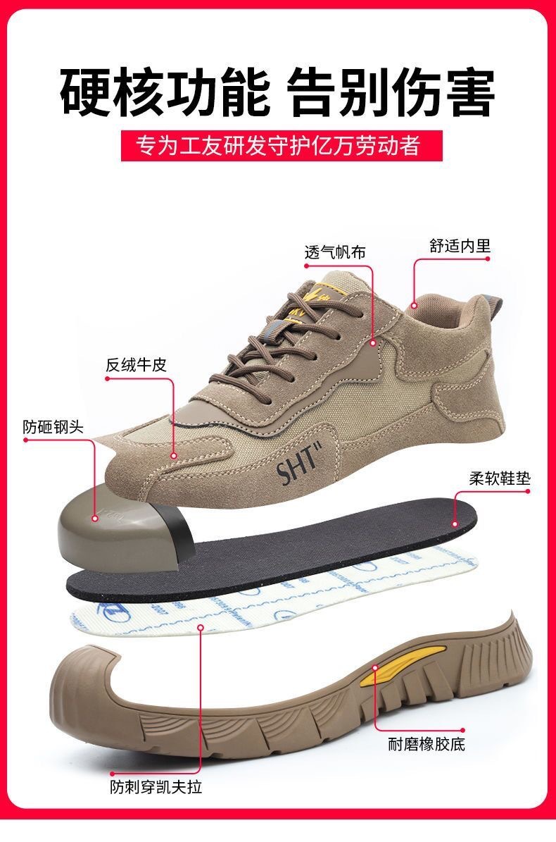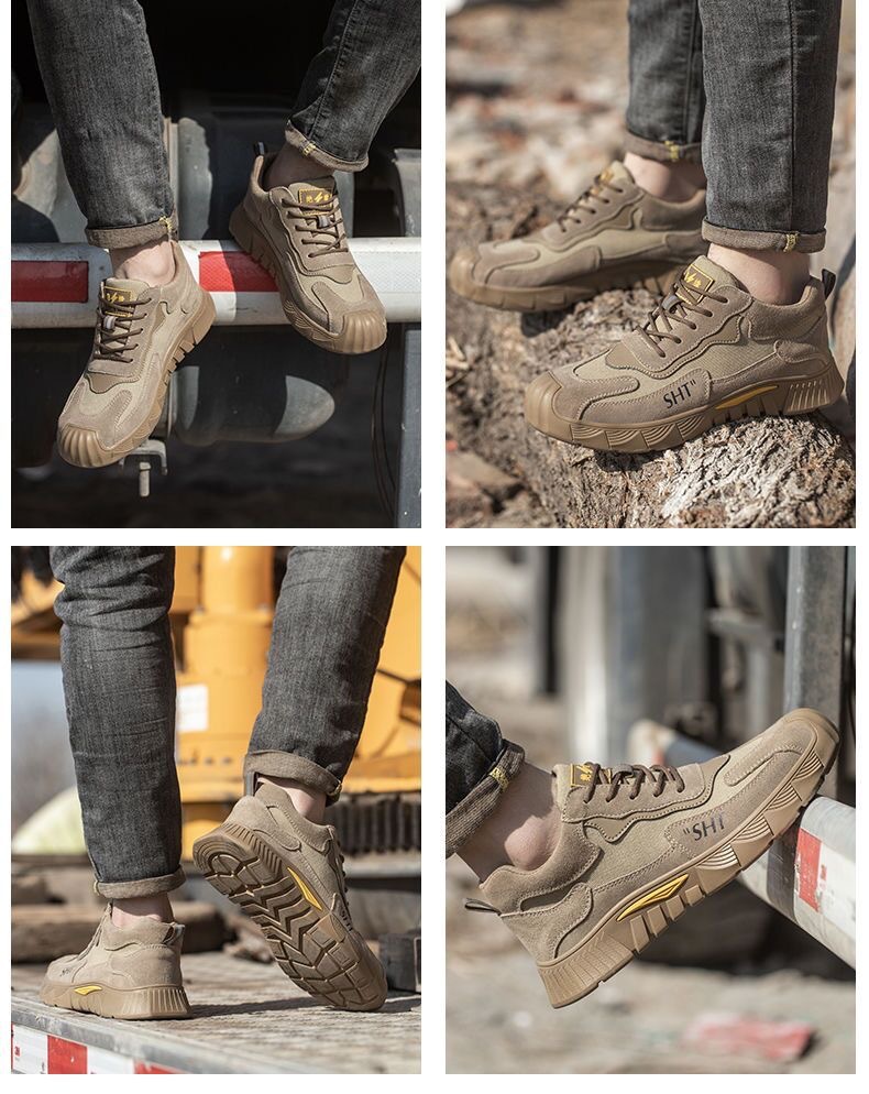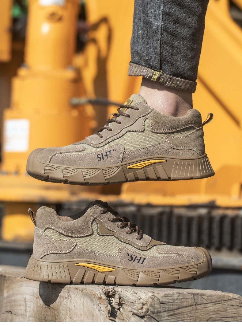 강철 발가락 캡이 있는 남성용 충격 방지 및 펑크 방지 노동 보호 신발, 편안하고 가볍고 부드럽고 내마모성 및 통기성이 뛰어난 건설 현장 작업 신발, 미끄럼 방지스토어 가기
