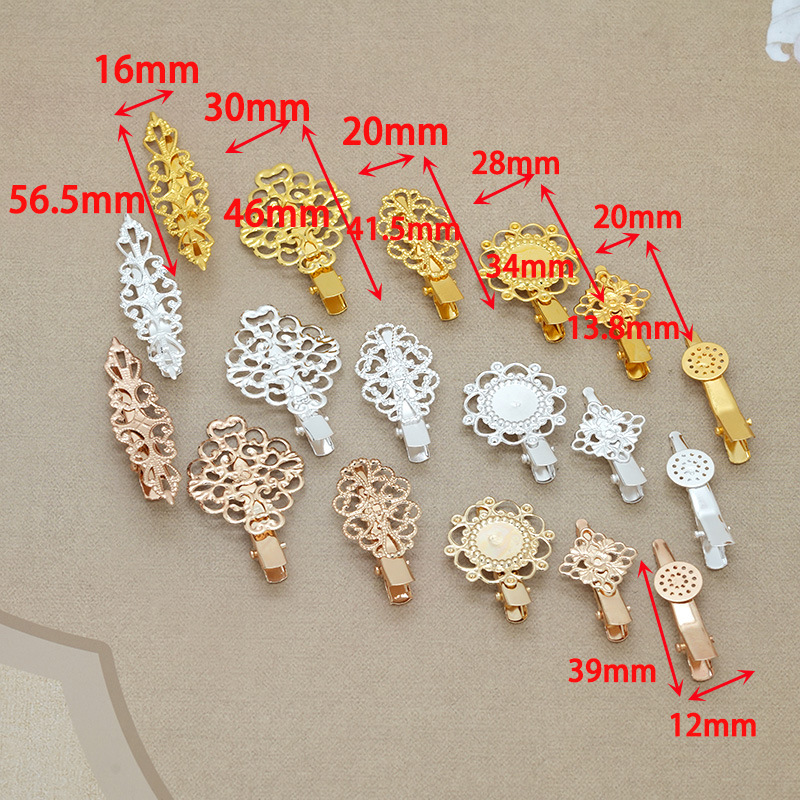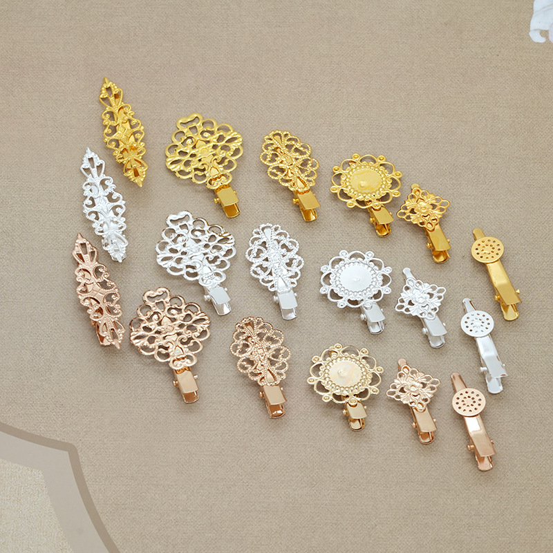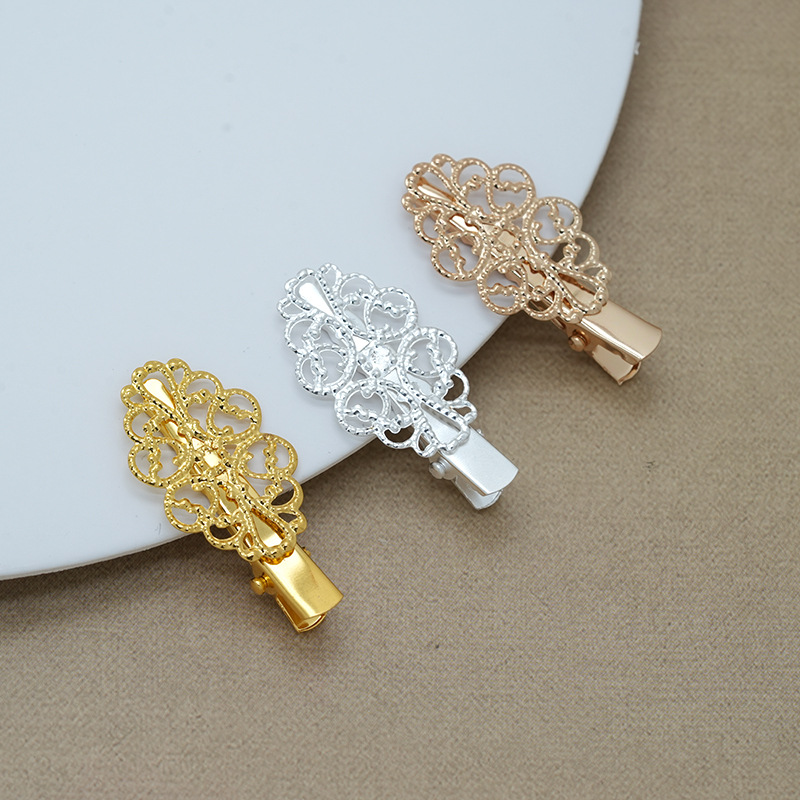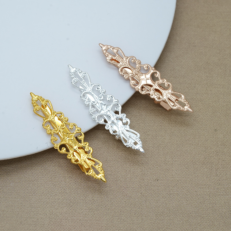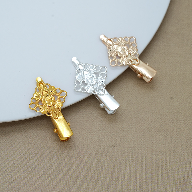 새로운 철 꽃 조각 타원형 오리 부리 클립 상서로운 구름 머리핀 유행 골동품 나비 마름모 머리핀 헤어 액세서리 금색과 은색 머리핀