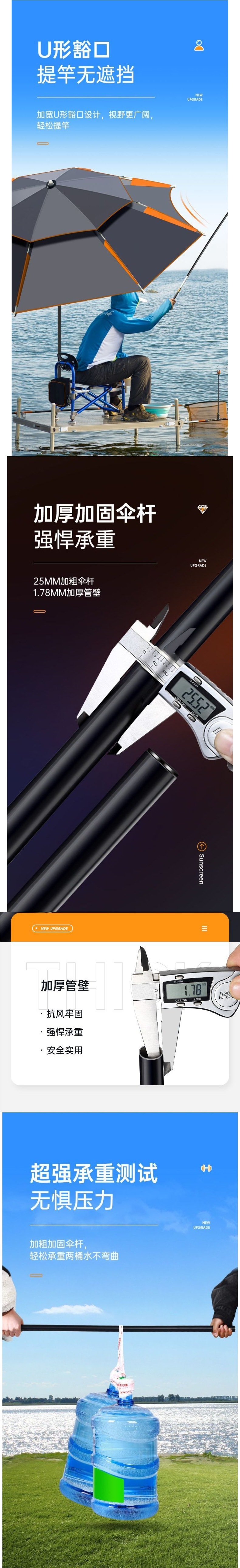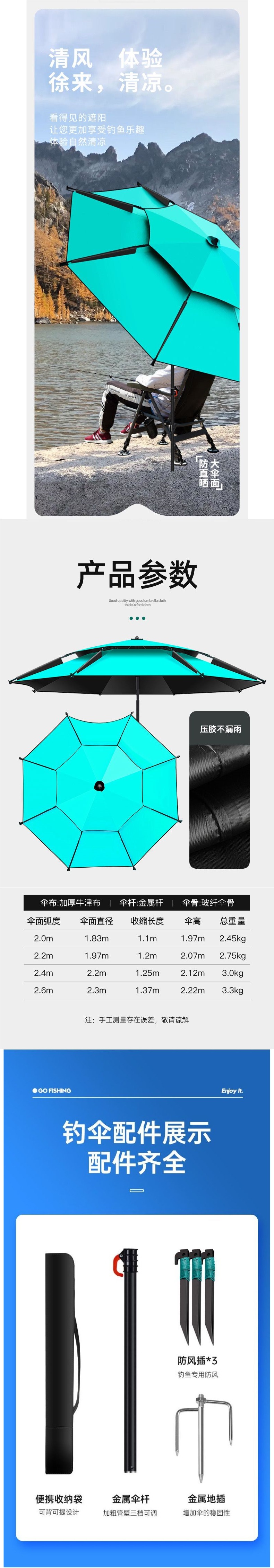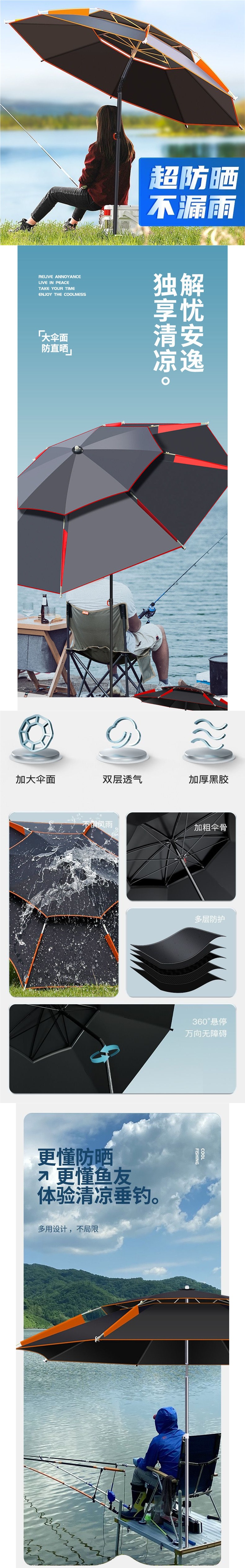 낚시 우산, 범용 대형 낚시 우산, 특수 두꺼운 자외선 차단제, 폭우 차양, 야외 방풍 두꺼운 낚시 우산