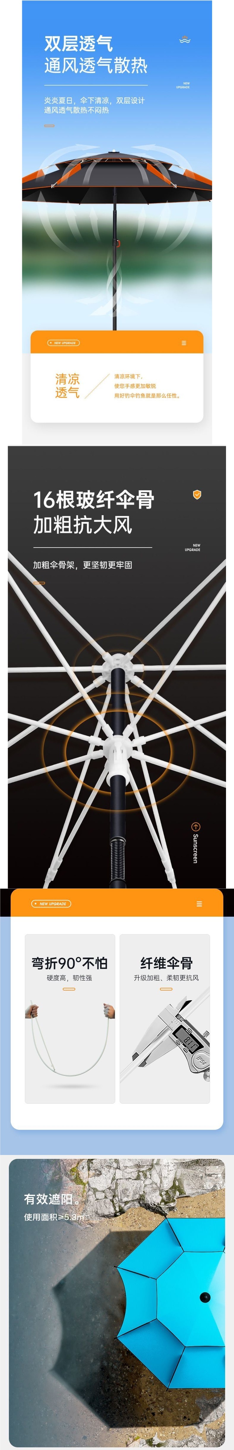 • 방수 및 방풍 기능이 더욱 강화된 새로운 12-리브 블랙 오렌지 2.2m