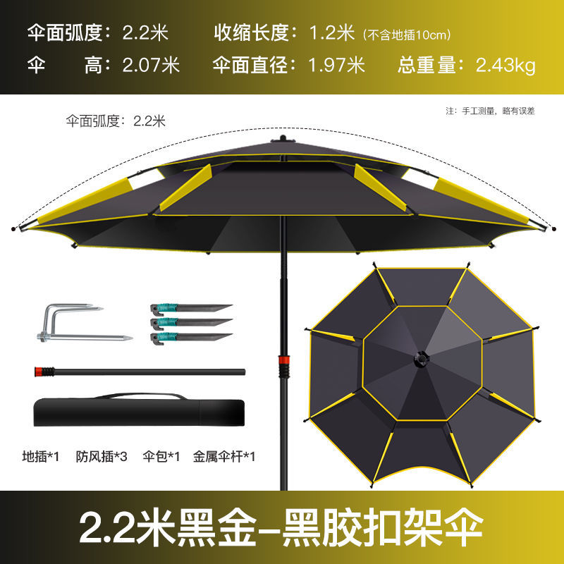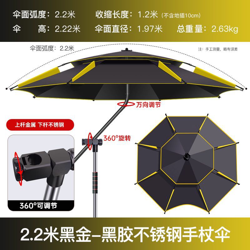 • 두꺼운 우산 표면, 완전 암막, 자외선 차단 및 방수, 블랙 골드 2.2m