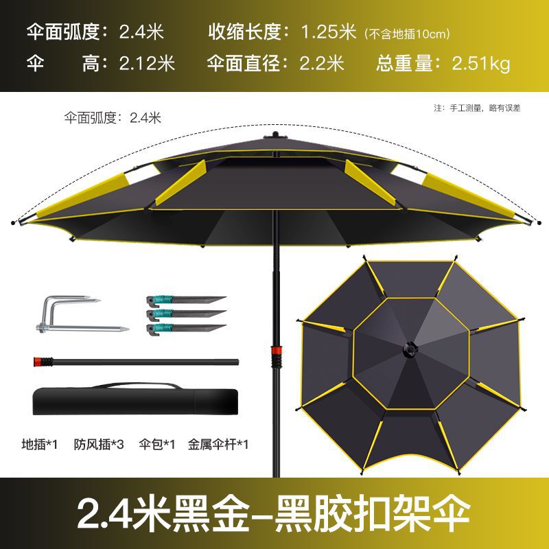 • 두꺼운 우산 표면, 완전 암막, 자외선 차단 및 방수, 블랙 골드 2.4m