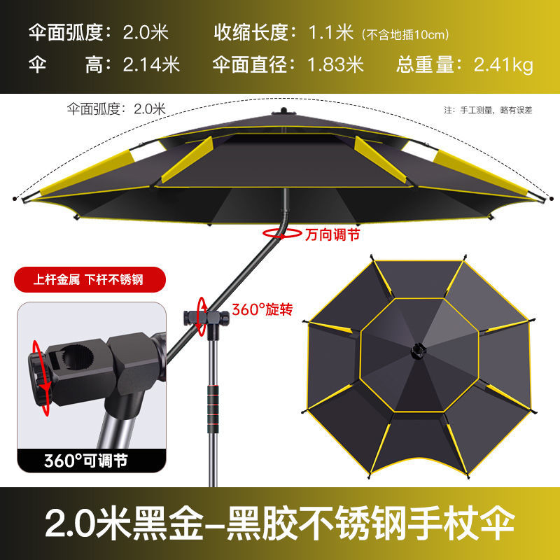 • 두꺼운 우산 표면, 완전 암막, 자외선 차단 및 방수, 블랙 골드 2.0m