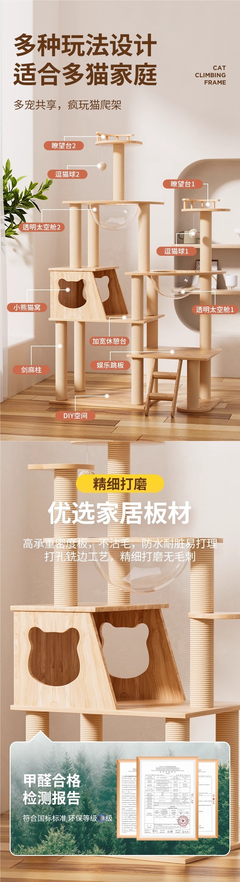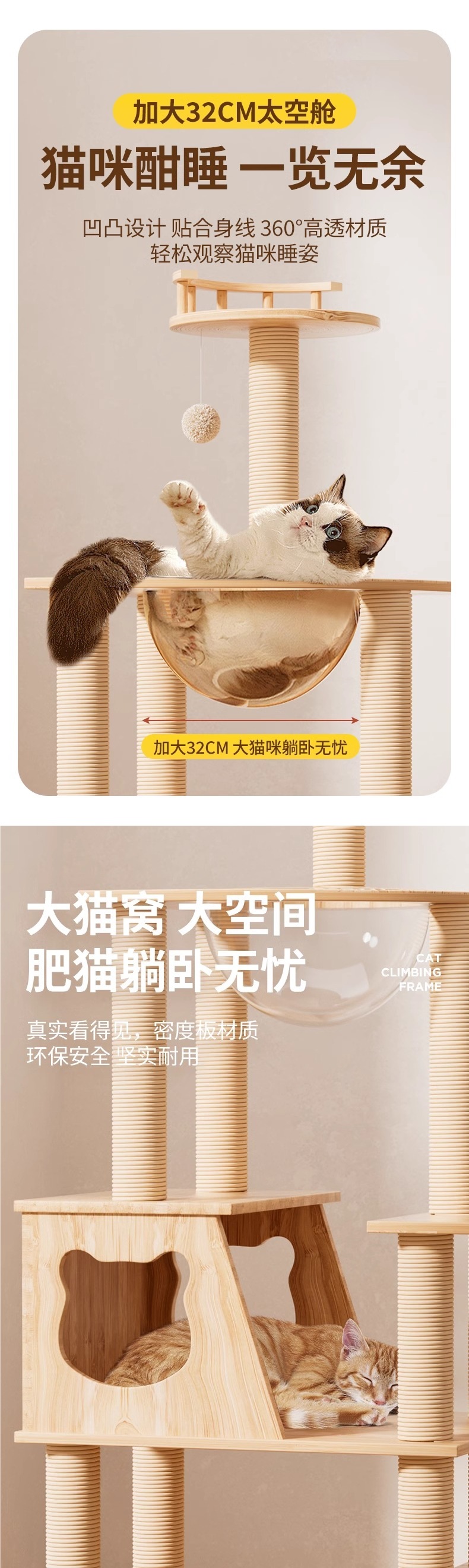 고양이 클라이밍 프레임, 고양이 둥지, 고양이 트리, 일체형 우주 캡슐, 고양이 스크래치 포스트, 점프 플랫폼, 대형 사이잘라 스탠드, 넓은 공간, 공간 절약형스토어 가기