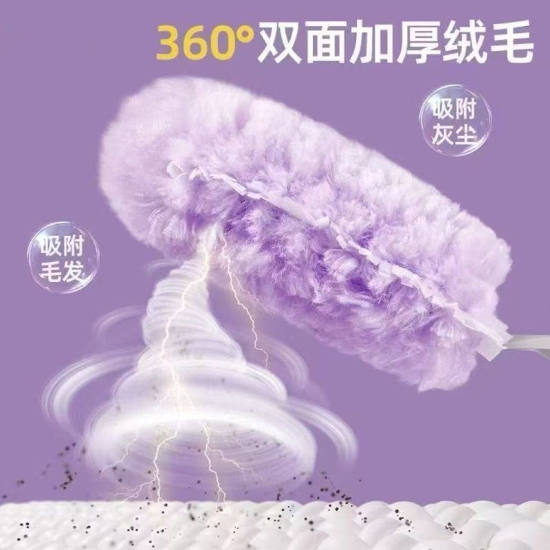 • 90cm 텔레스코픽 접이식 긴 막대 + 양면 먼지떨이 헤드 2개 보라색 - 매직 버블 먼지떨이 세척 가능하고 정전기 방지 푹신함