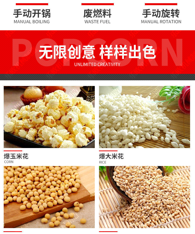 전기 가스 이동식 냄비 긴 옥수수 팝콘 기계 상업용 가스 완전 자동 대포 옥수수 밤 기계스토어 가기