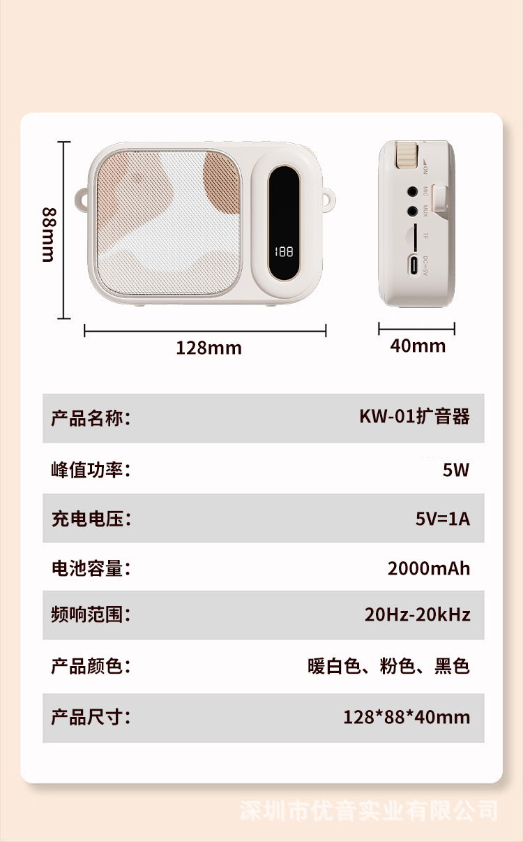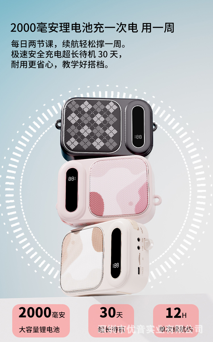 扩音器电池容量:4.2V/2000mAh(18650) /领夹唛电池容量:80mAh