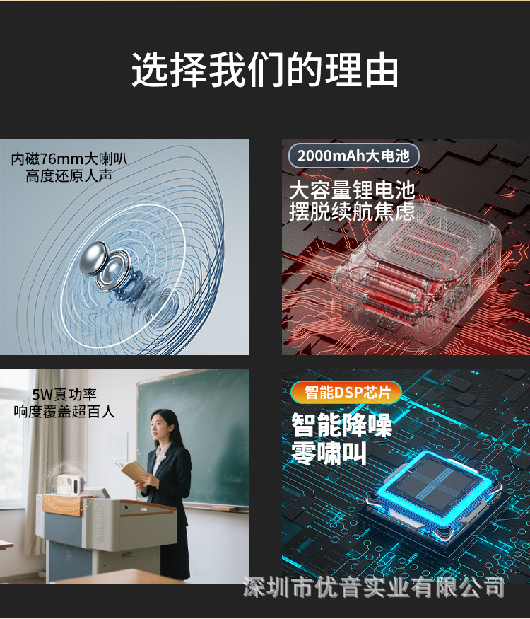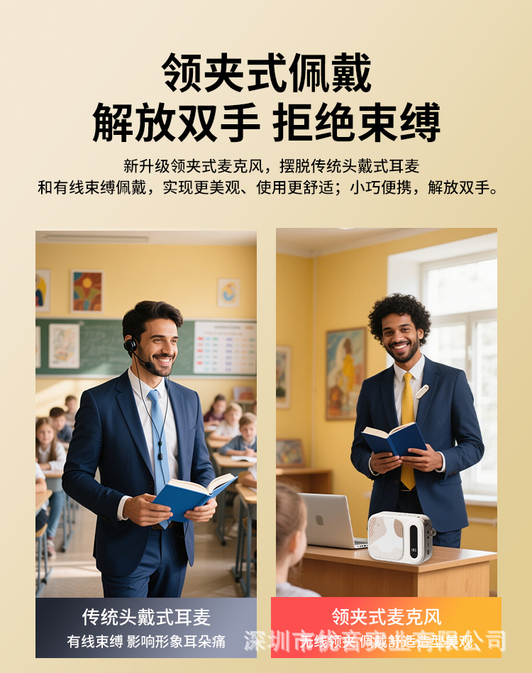适用场景:强调产品带来的移动自由和音质提升,面向教师,培训师,演讲师,导游,导购,主播等专业或半专业人士。