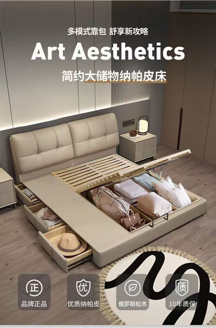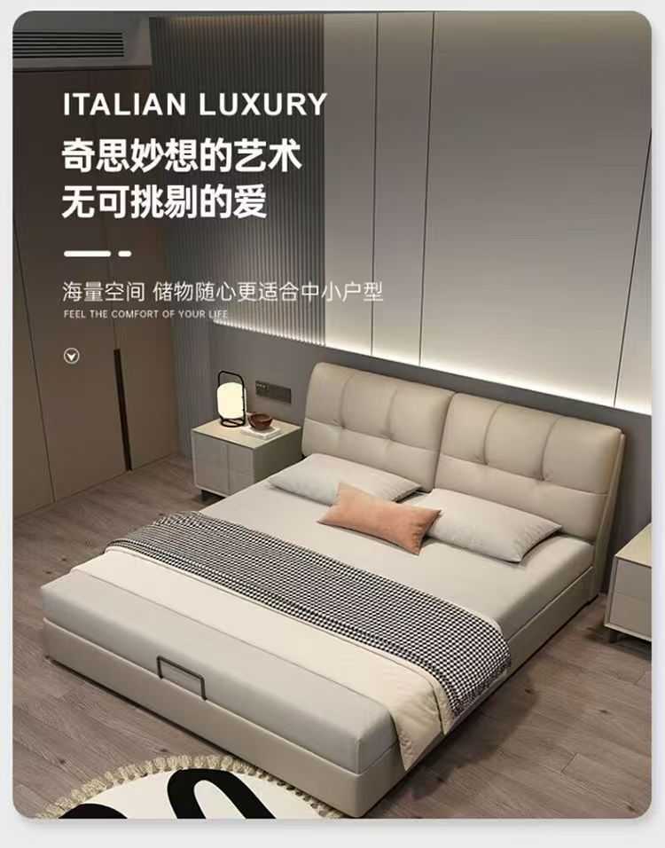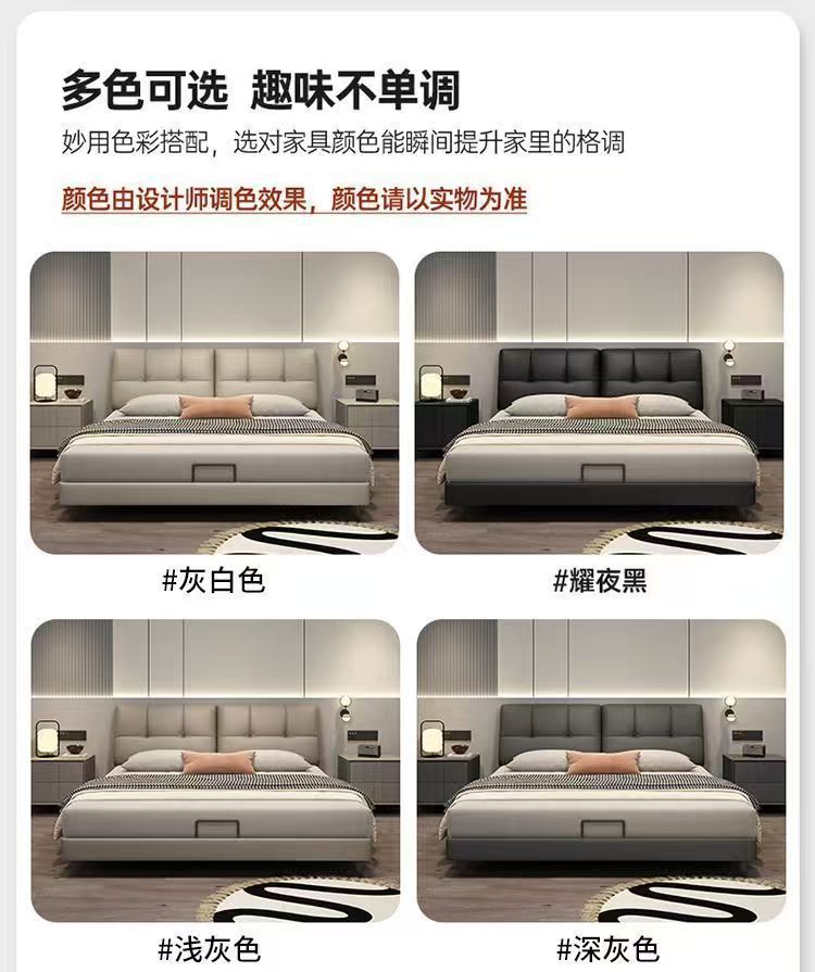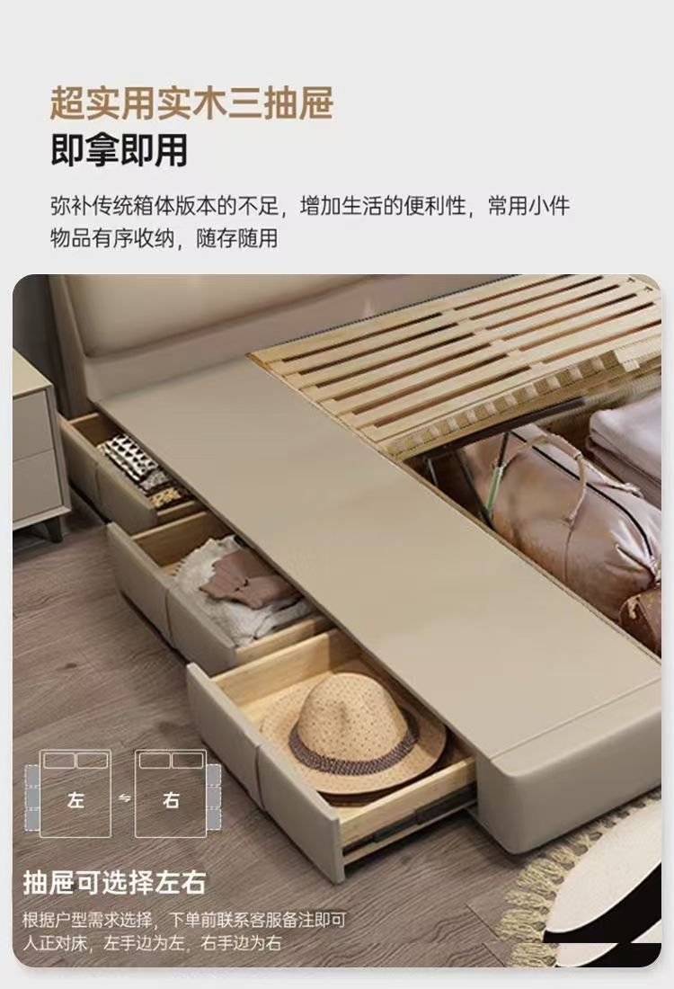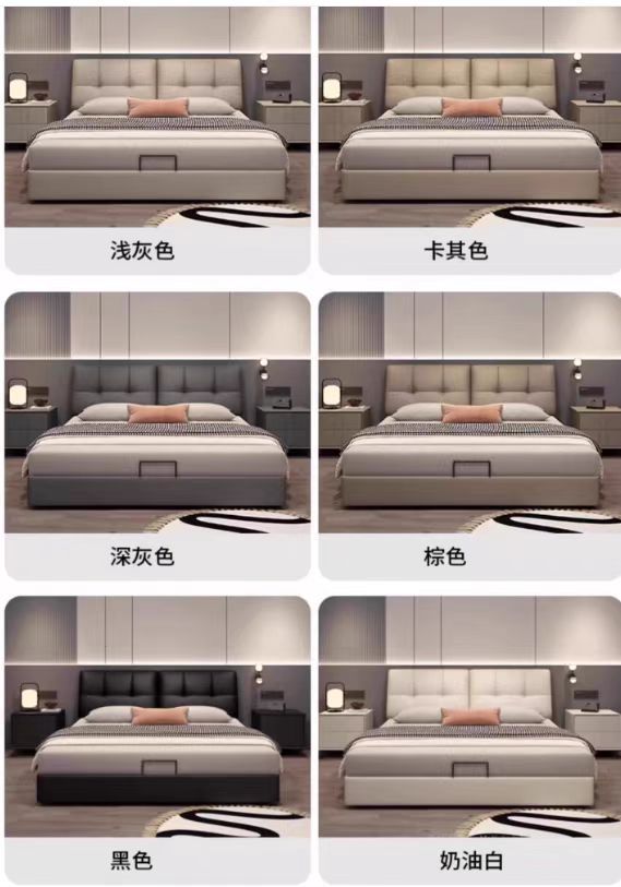 프렌치 크림 스타일 가죽 침대, 모던하고 심플한 라이트 럭셔리 침대, 마스터 침실, 대형 침대, 더블 침대, 웨딩 침대스토어 가기
