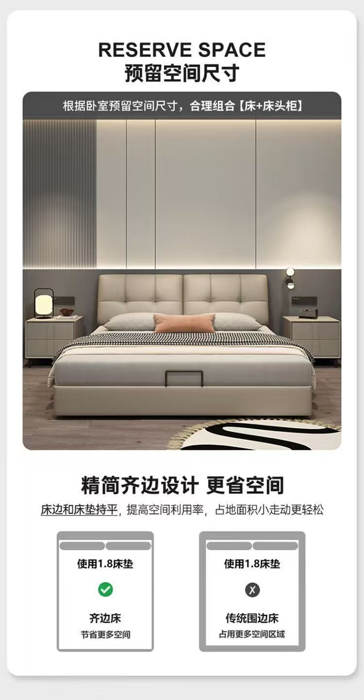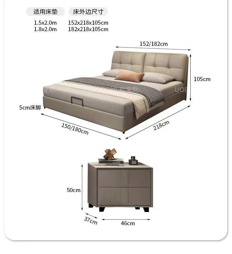 • 전용 침대 + 피부 친화적인 벨벳 라텍스 매트리스 + 캐비닛 2개