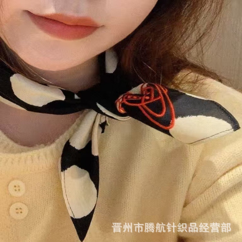 새로운 일본 vivi 서황후 토성 자수 실크 스카프 폴카 도트 스타 낙서 손수건 사각형 스카프 작은 스카프 도매스토어 가기