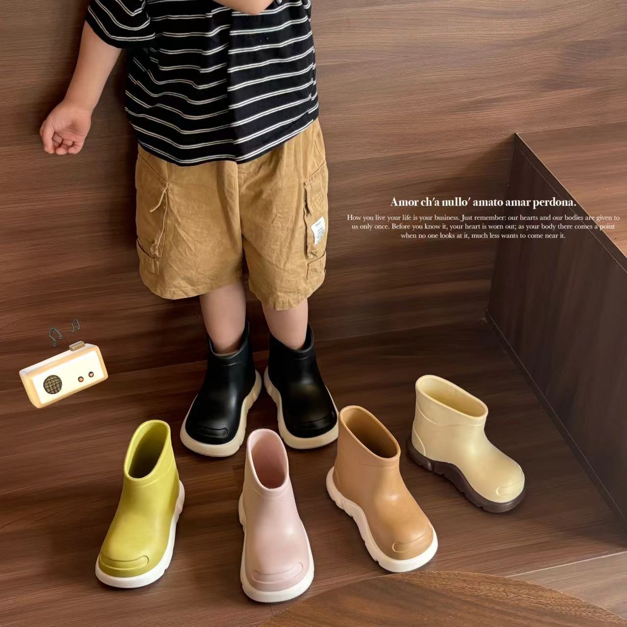 어린이 2025 새로운 봄 장화 소년 장화 유치원 학교 중간 튜브 소녀 미끄럼 방지 신발 커버