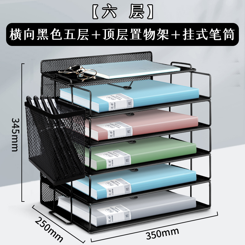 • [6단] 가로형 검정색 5단 + 상단 수납선반 + 걸이형 펜홀더