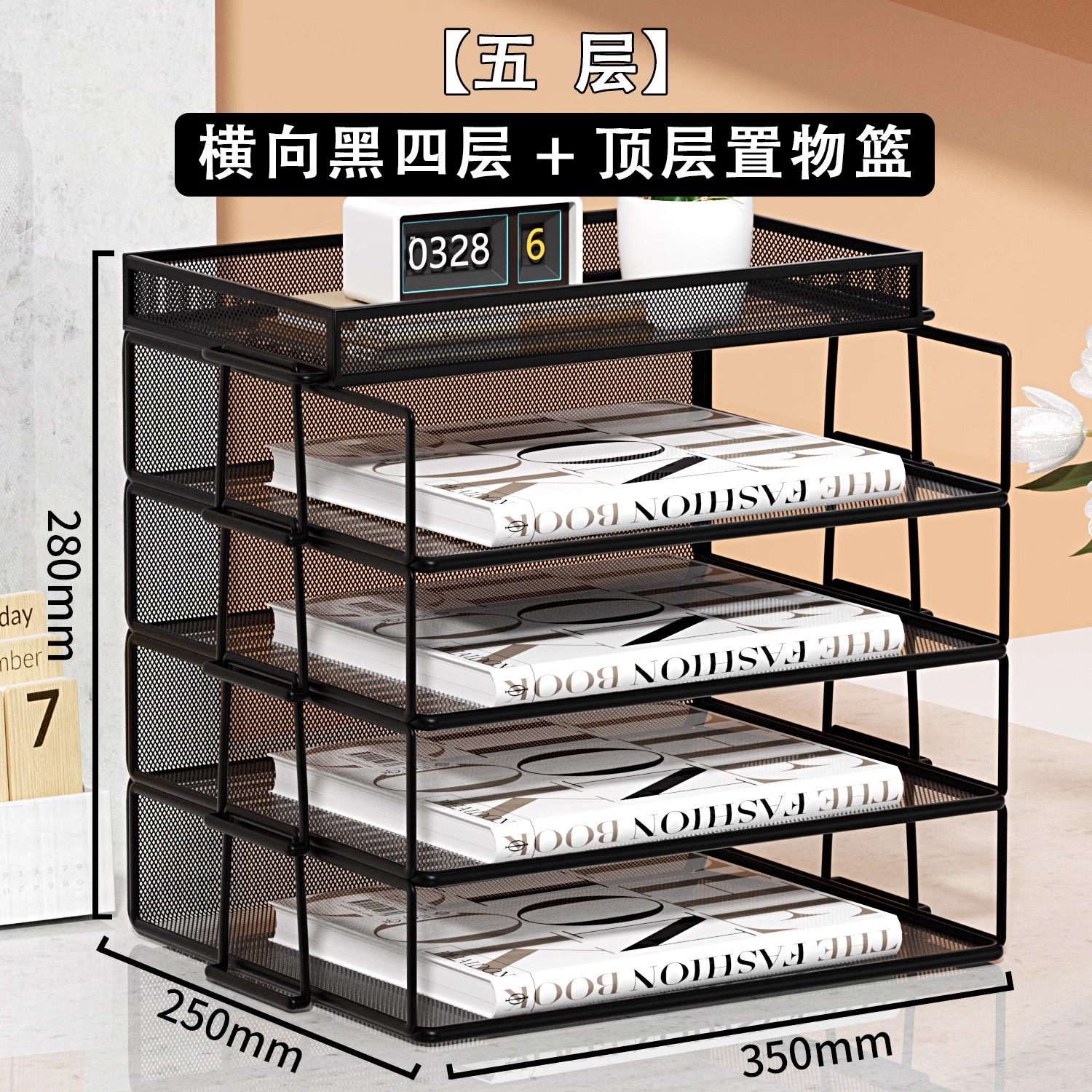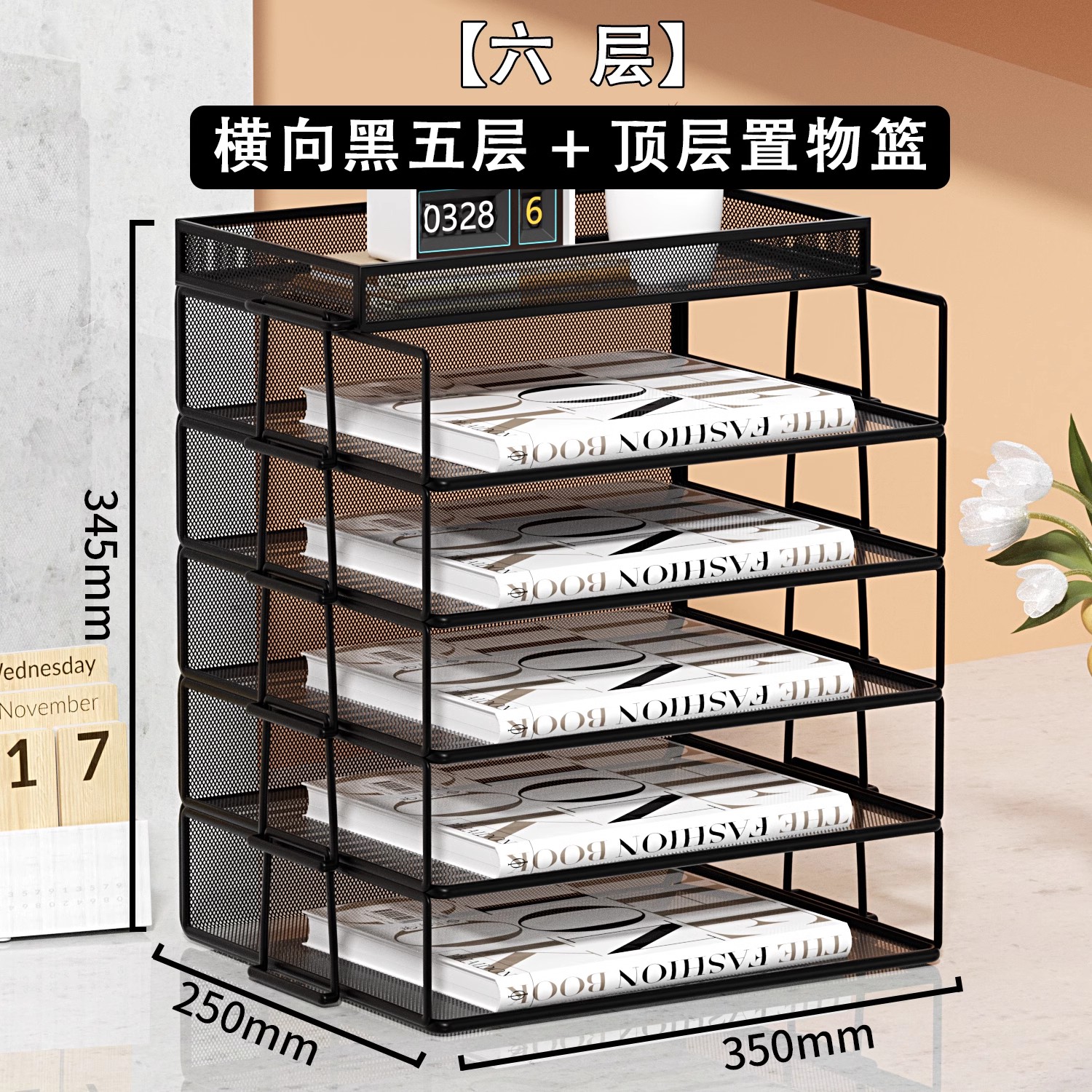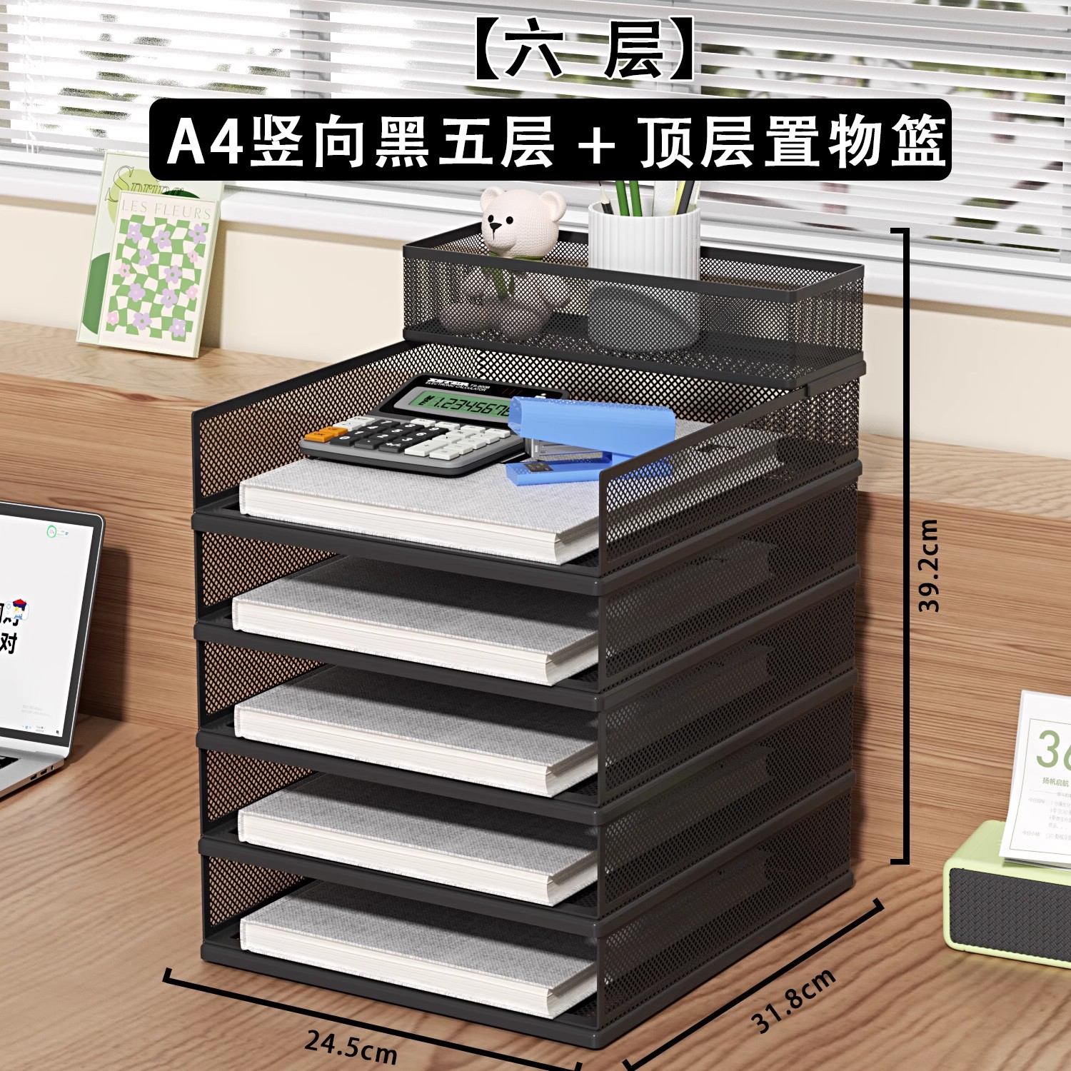 • A4 유럽식 [6단] 검정색 수직 스태킹 랙 5단 + 수납바구니