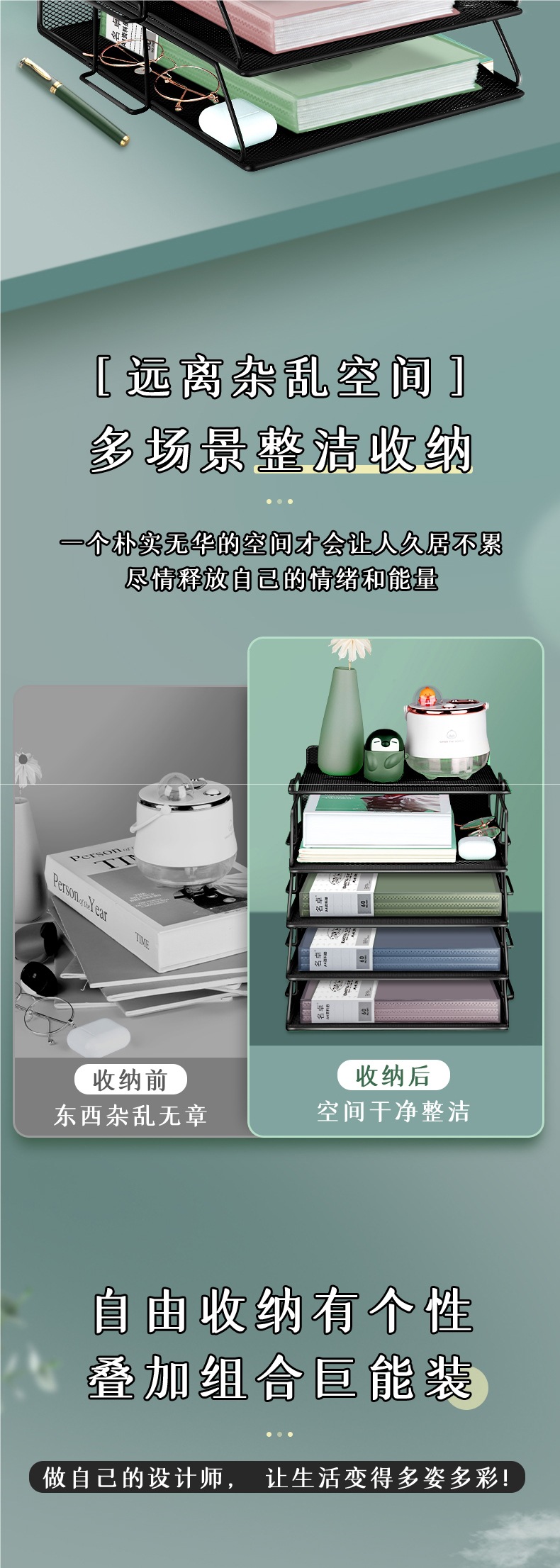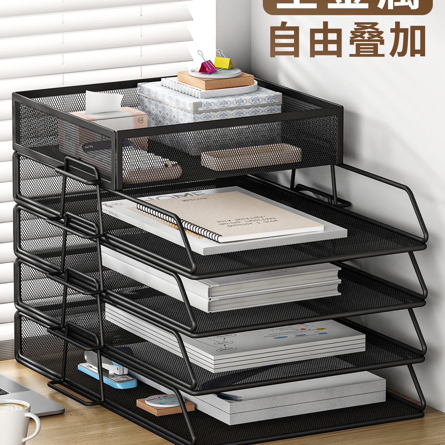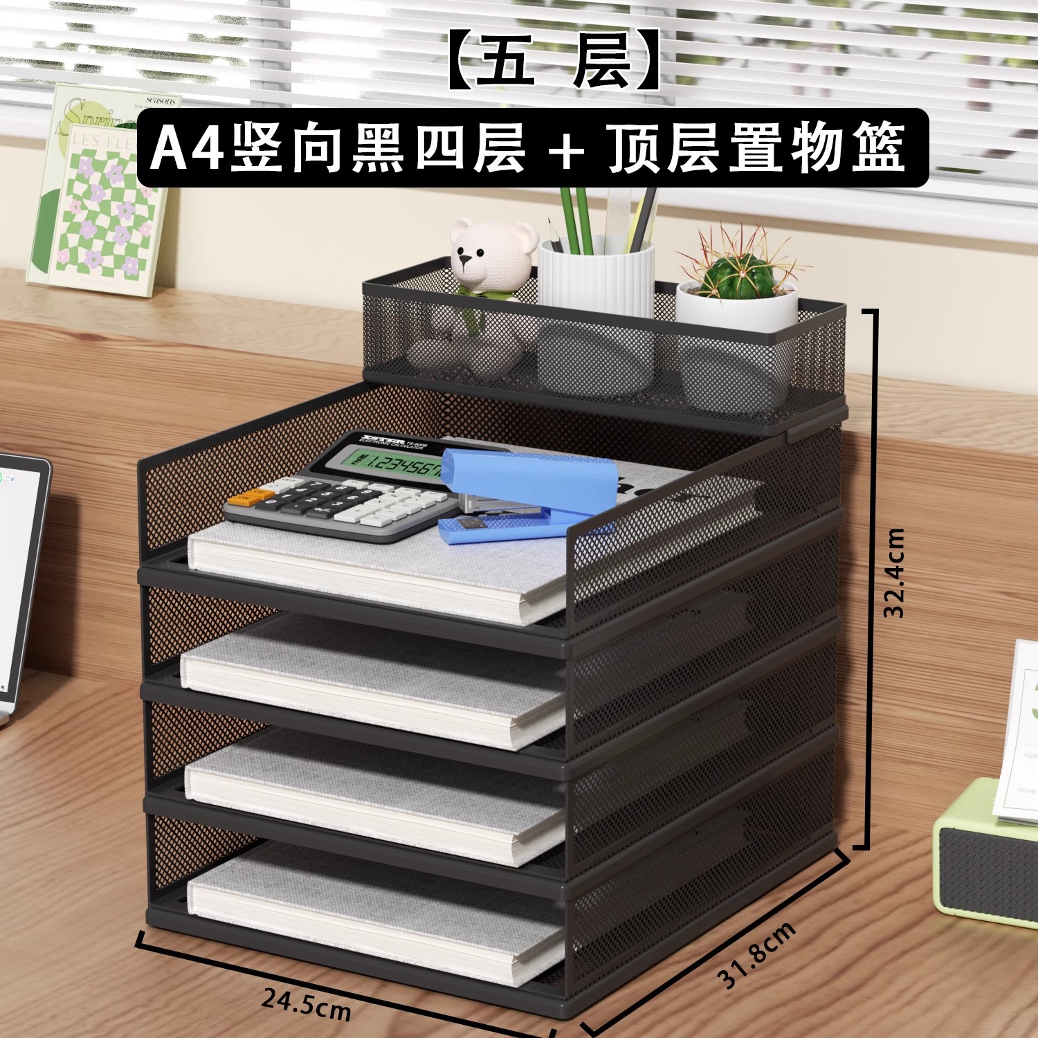 • A4 유럽식 [5단] 검정색 수직 스태킹 랙 4단 + 수납바구니