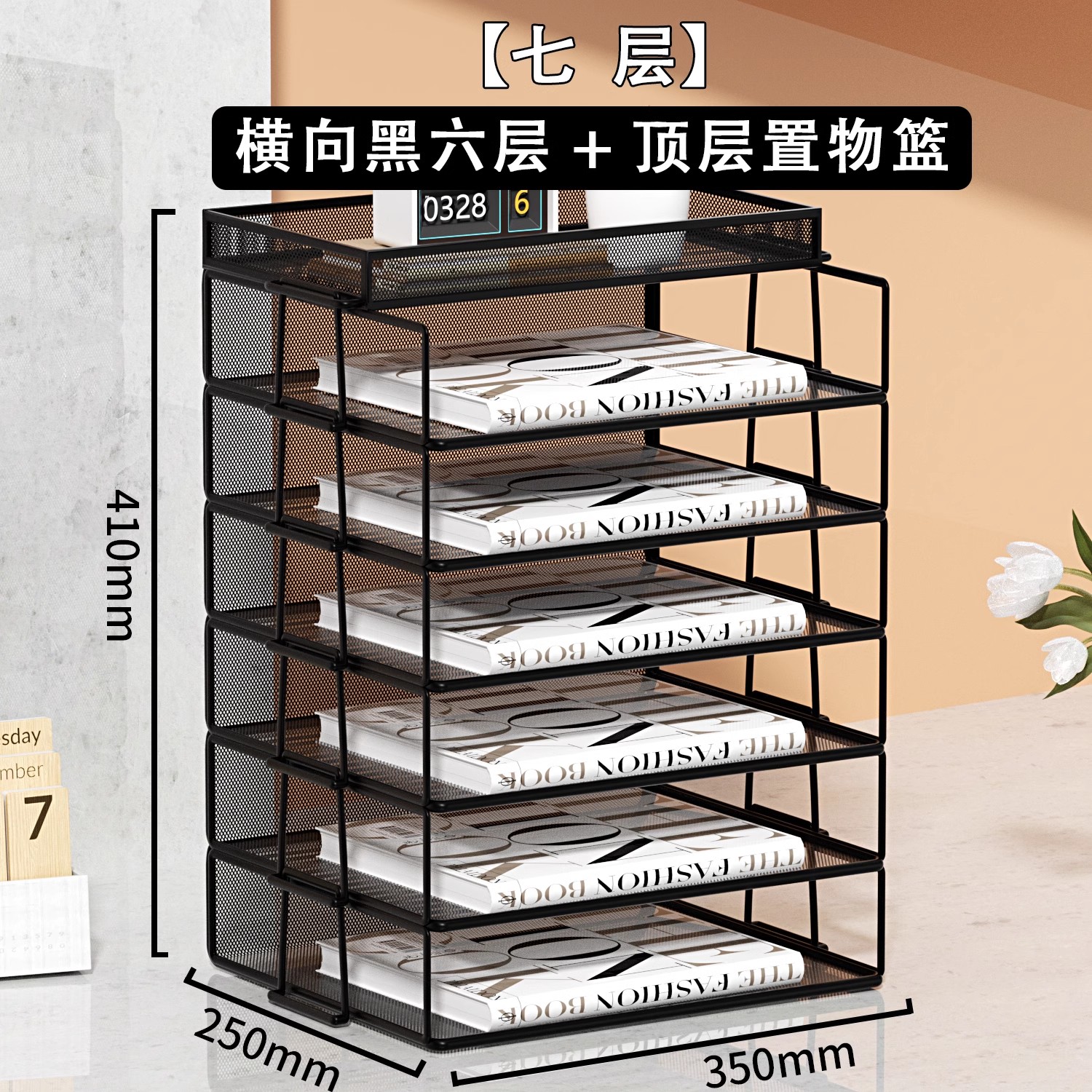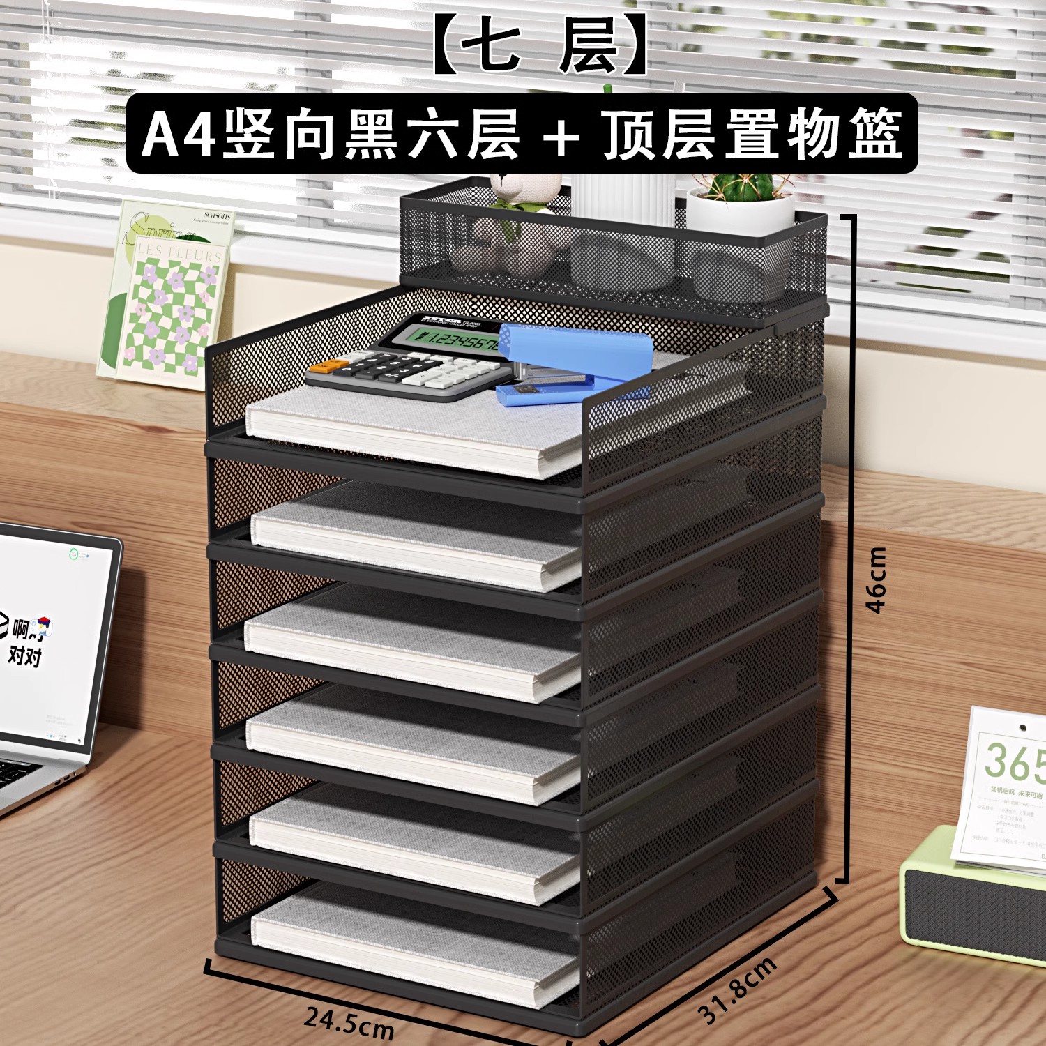 • A4 유럽식 [7단] 검정색 수직 스태킹 랙 6단 + 수납바구니