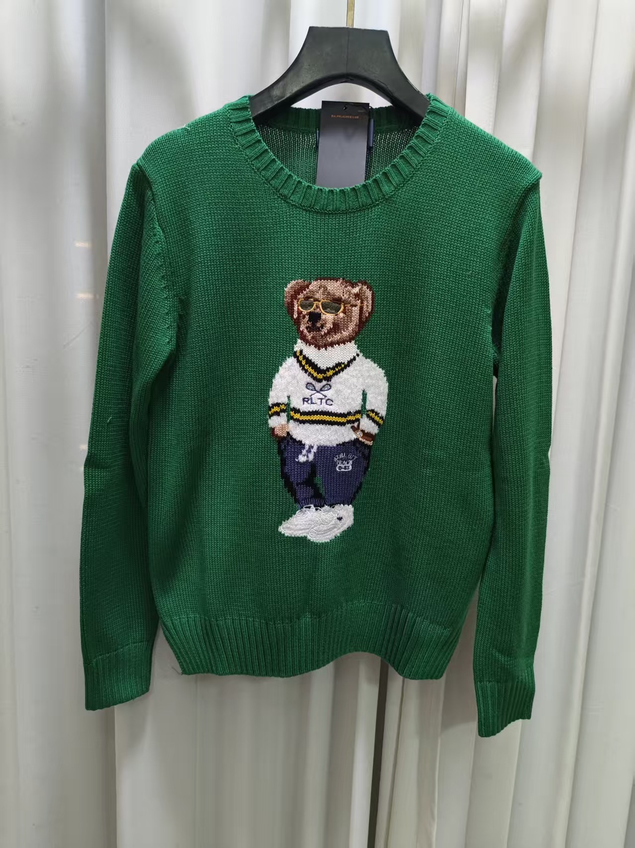 2025년 R.L 가을 겨울 신상품 모직 혼방 만화 곰돌이 라운드넥 대학 스타일 젊어보이는 다용도 여성용 긴 자수 스웨터스토어 가기