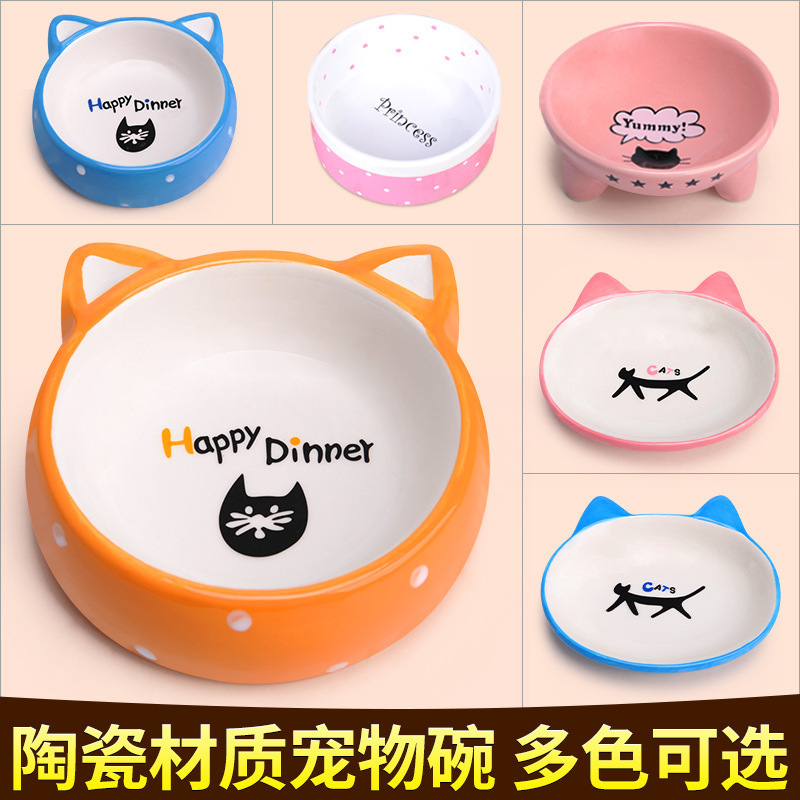 공장 직접 판매 애완 동물 세라믹 그릇 미끄럼 방지 개밥 그릇 귀여운 만화 인쇄 세라믹 개 그릇 고양이 그릇스토어 가기