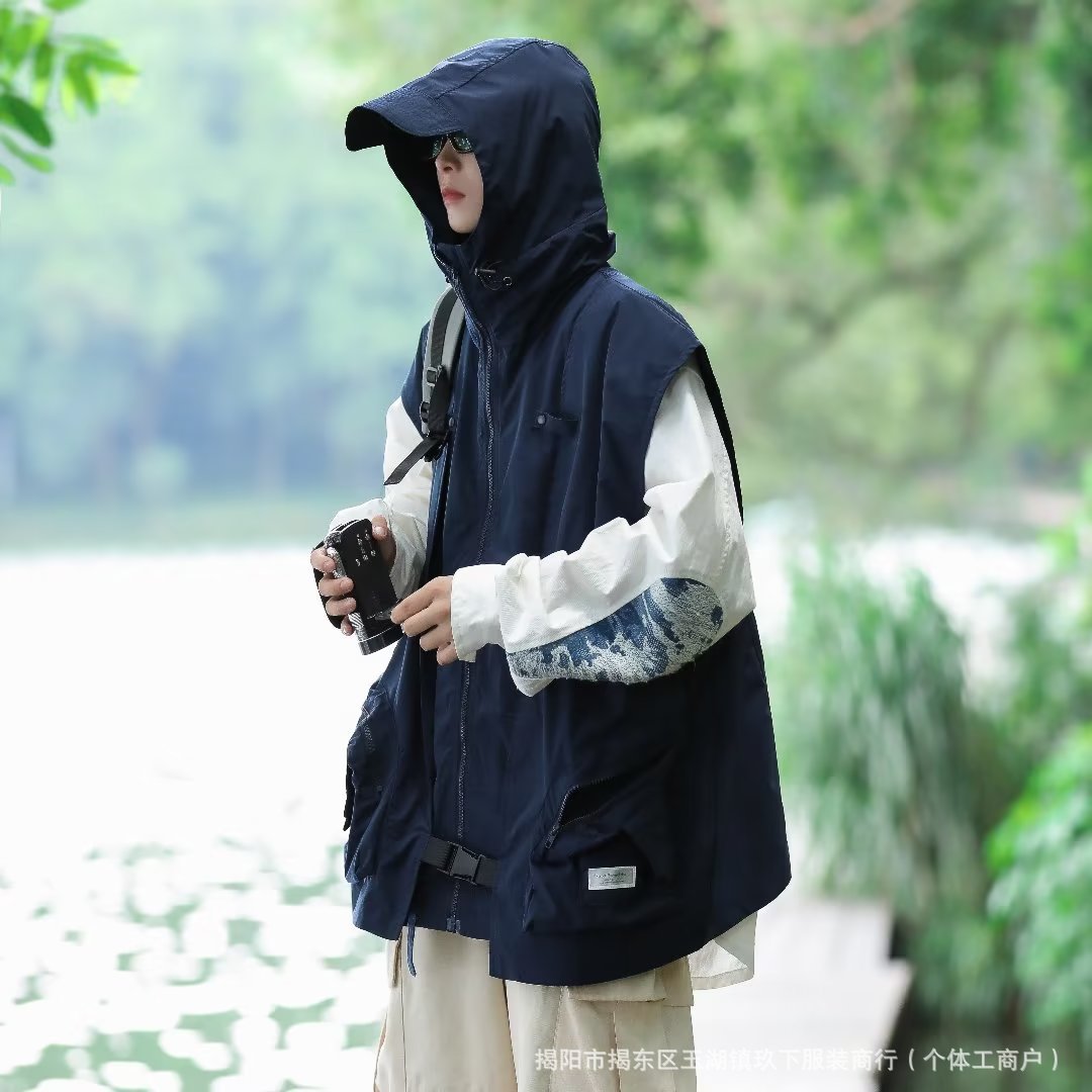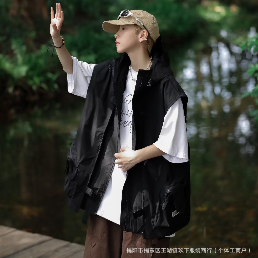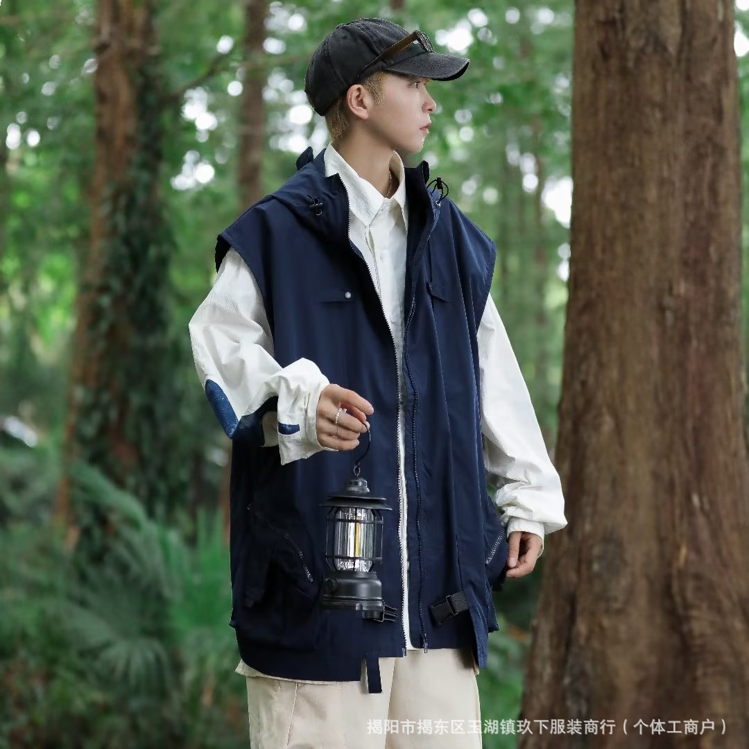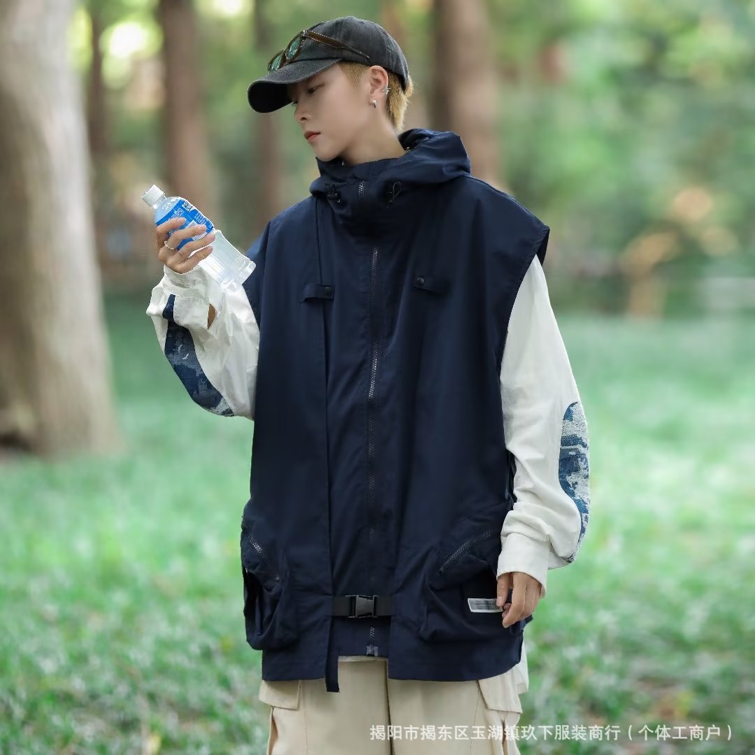 일본식 아메리칸 재킷 조끼 여름 트렌디 브랜드 ins 작업 조끼 루즈한 기능성 스타일 핸섬 재킷 남성용