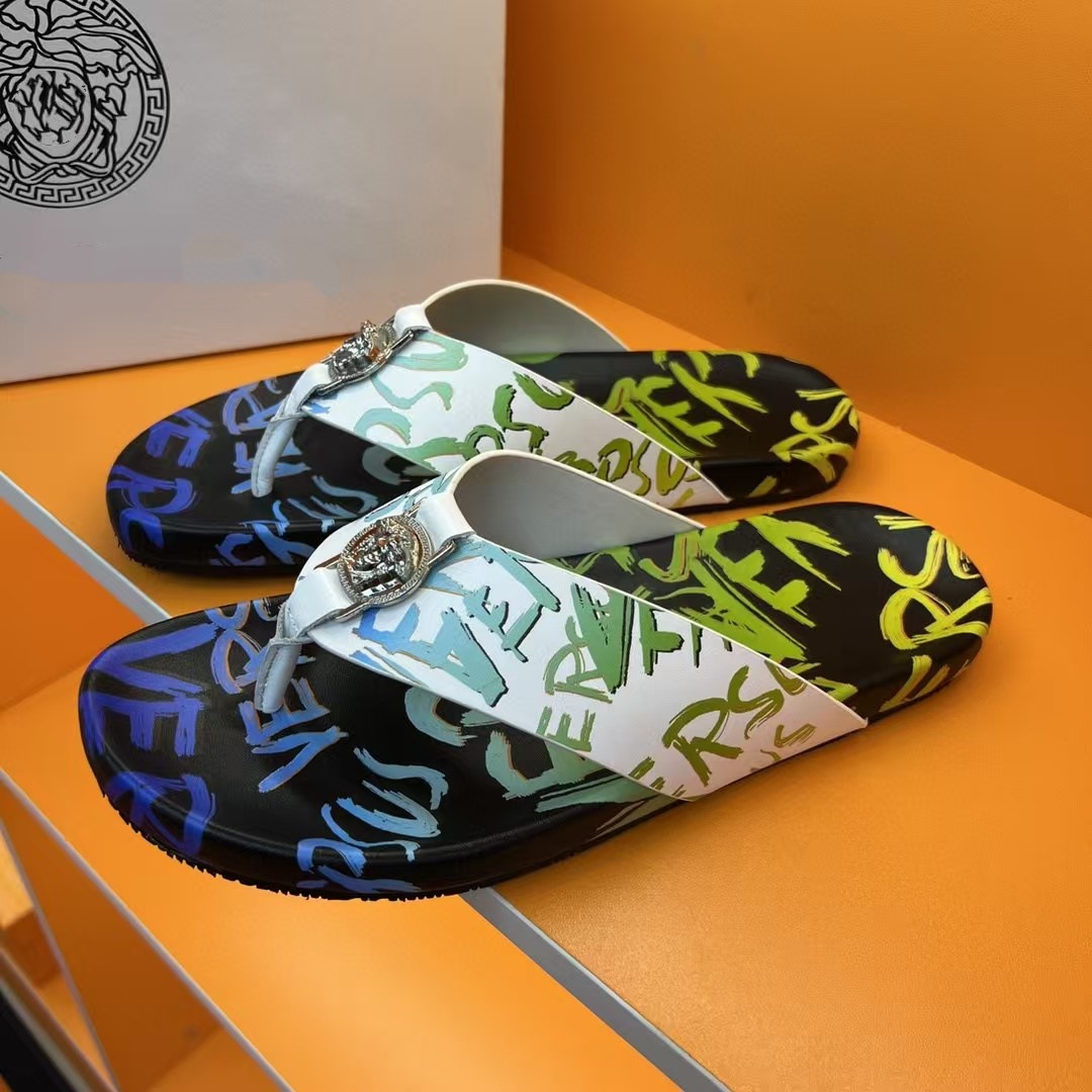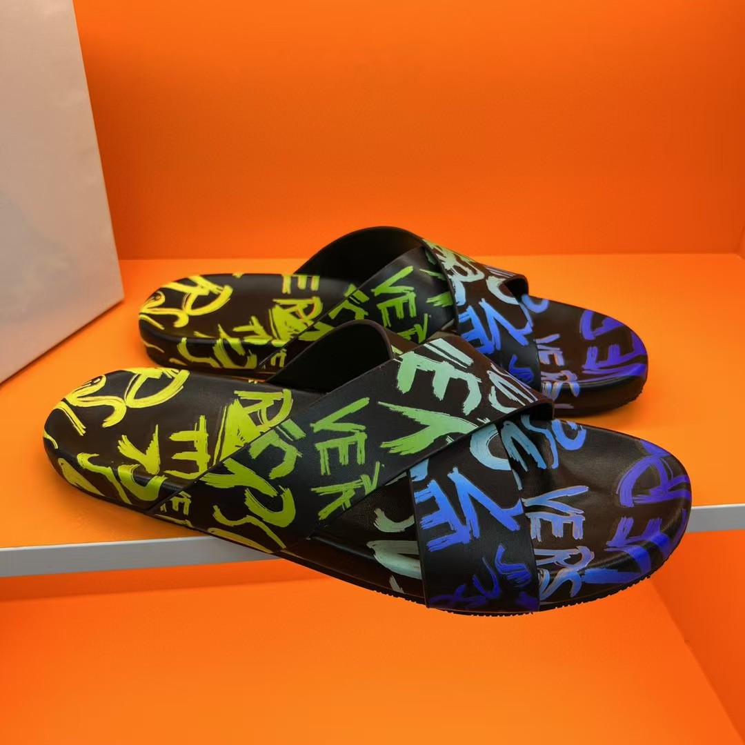 국경 간 AliExpress 여름 맞춤형 낙서 미끄럼 방지 플립 플롭 남성 플립 플롭 비치 신발 정품 가죽 부드러운 밑창 샌들