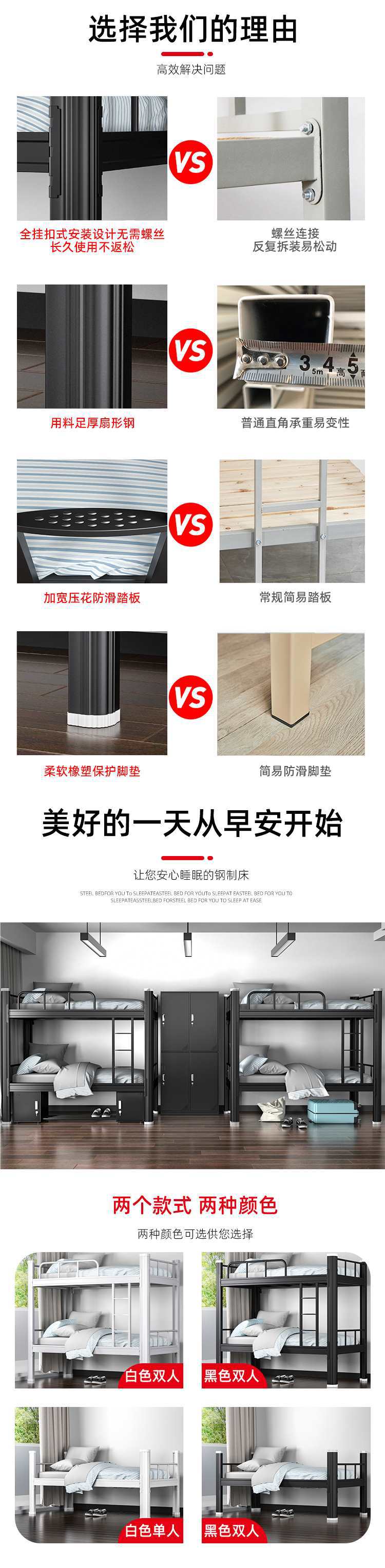 두꺼운 이층 철제 프레임 침대, 이층 철제 침대, 학생 기숙사 이층 침대, 직원 기숙사 이층 침대
