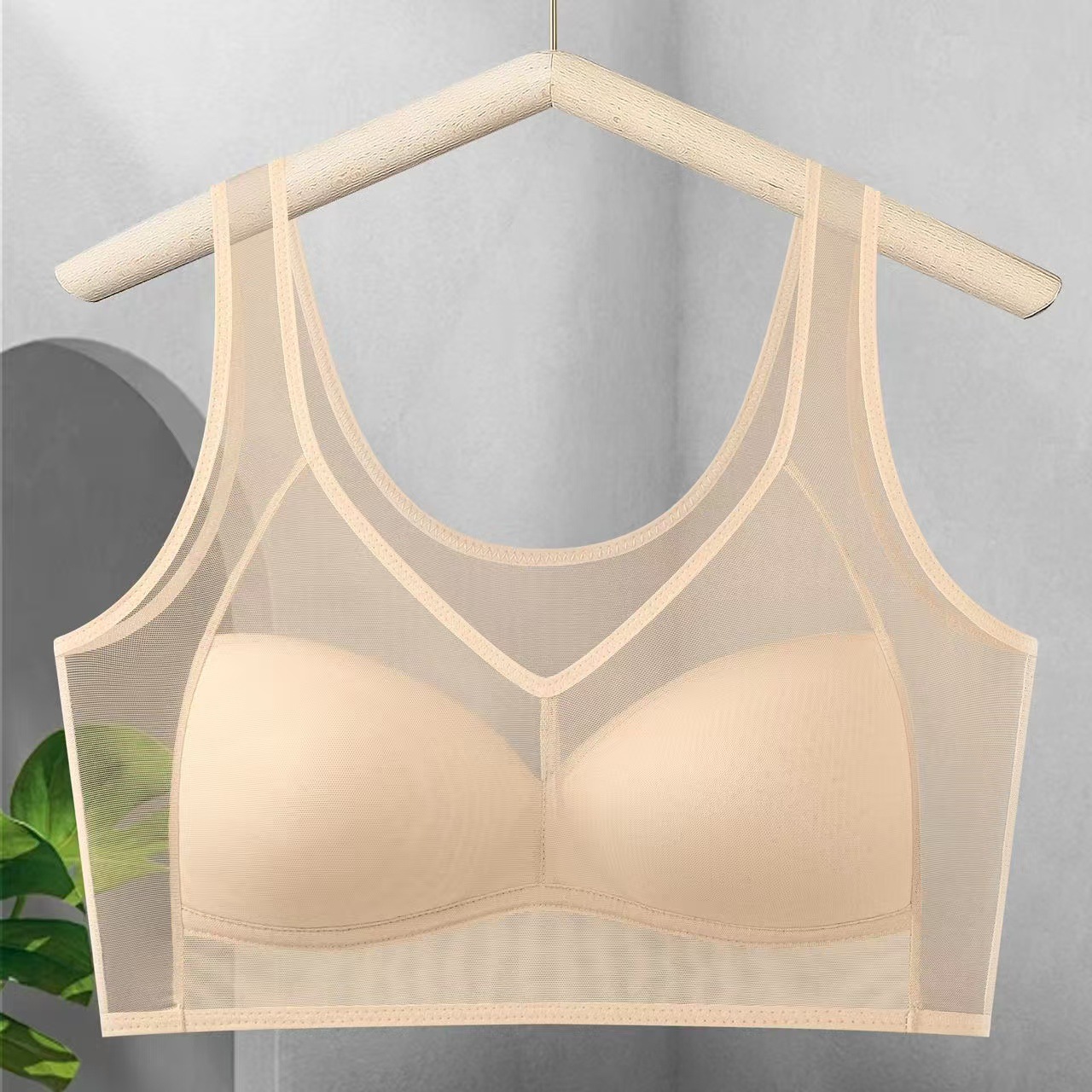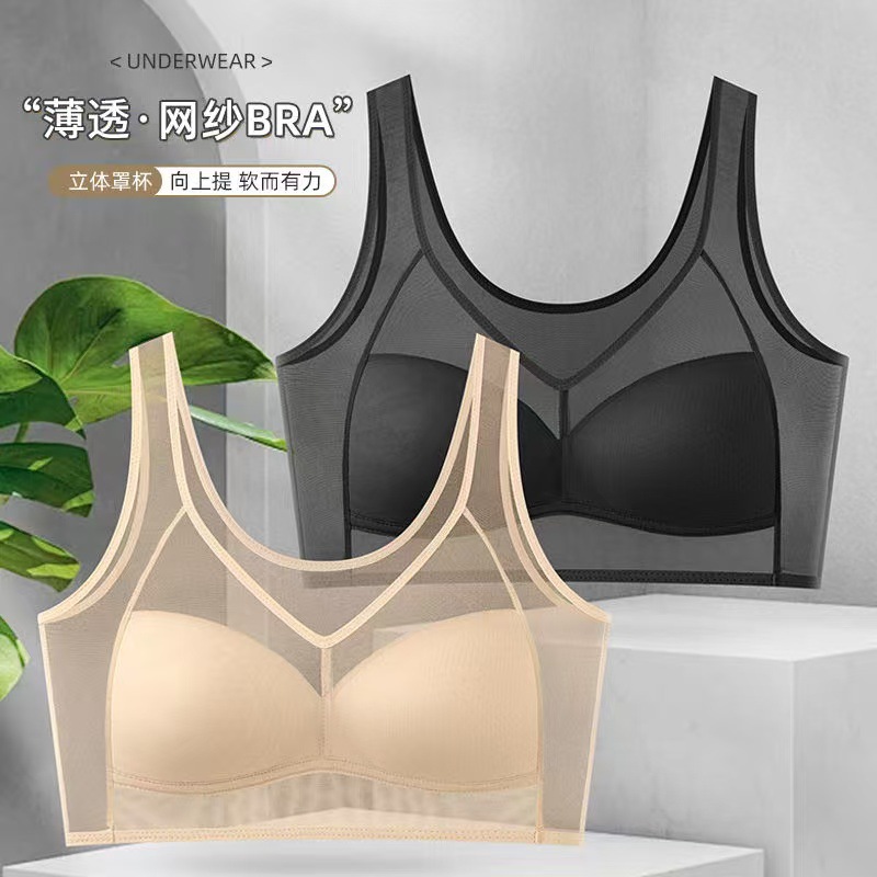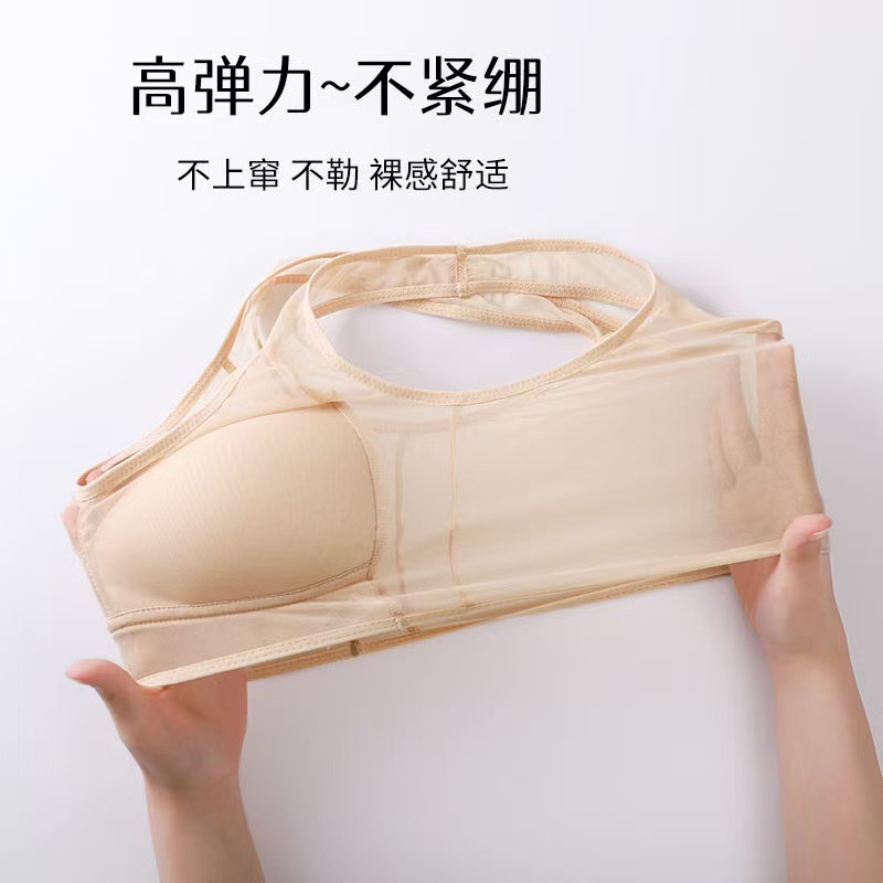 새로운 스타일의 누드 메쉬 조끼, 통기성, 와이어 프리, 푸시업, 가슴 수축, 통기성 구멍, 모델 컵, 큰 가슴, 여성용 작은 브라스토어 가기