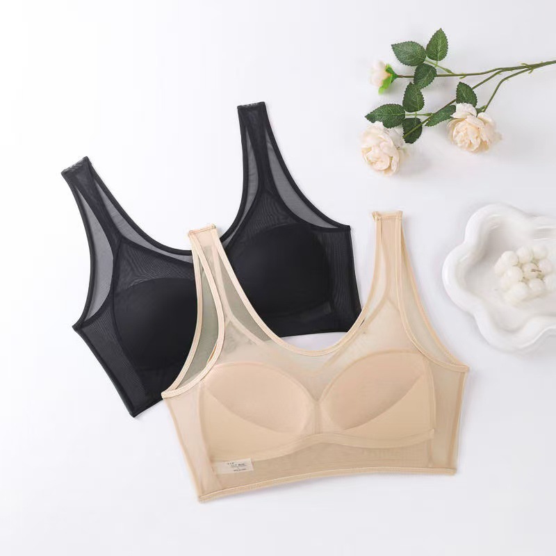 새로운 스타일의 누드 메쉬 조끼, 통기성, 와이어 프리, 푸시업, 가슴 수축, 통기성 구멍, 모델 컵, 큰 가슴, 여성용 작은 브라