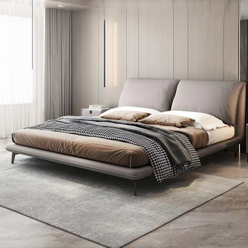 이탈리안 미니멀리스트 가죽 침대 마스터 침실 더블 모던 심플 침대 1.8m 북유럽 라이트 럭셔리 디자이너 와비사비 원목 침대