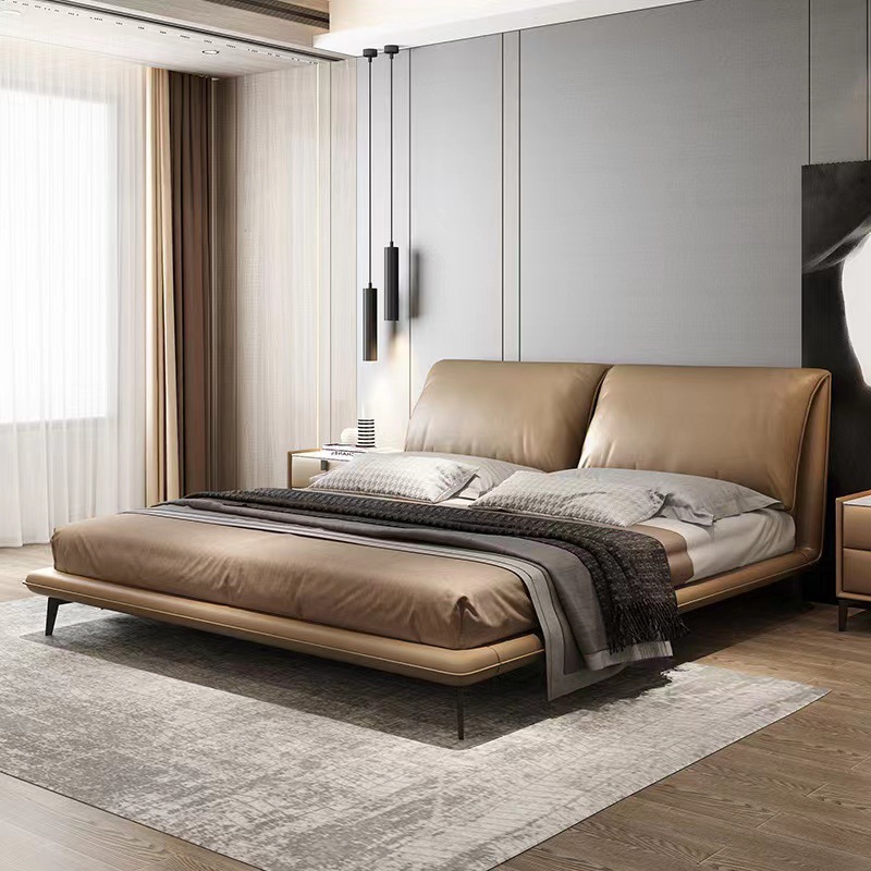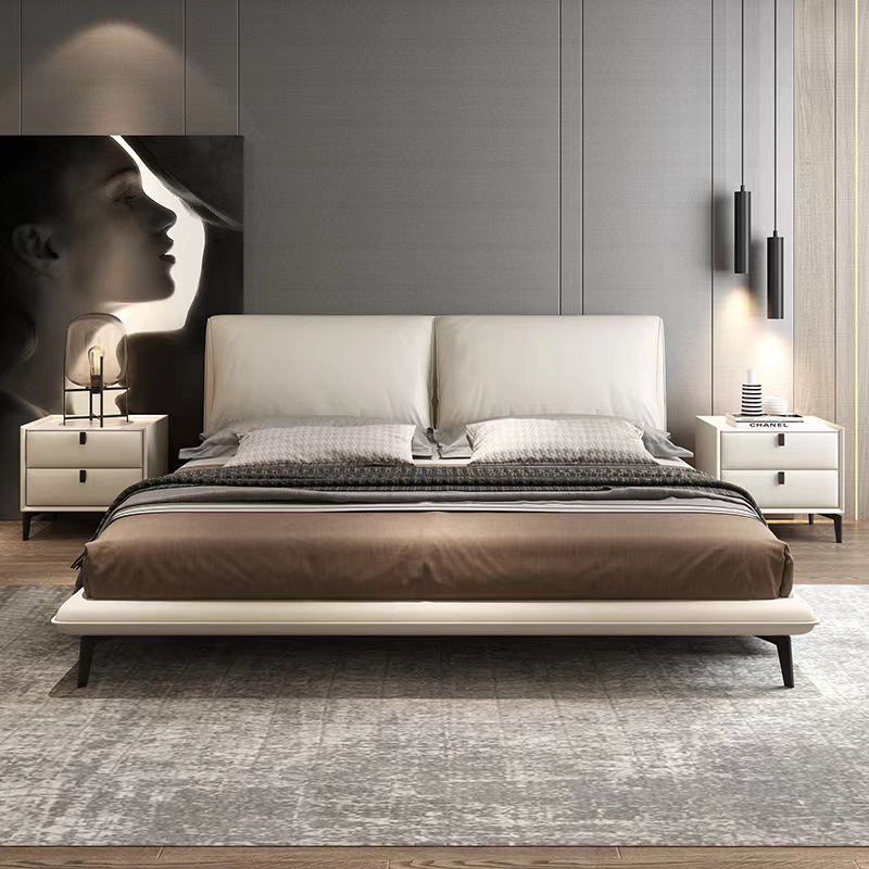 이탈리안 미니멀리스트 가죽 침대 마스터 침실 더블 모던 심플 침대 1.8m 북유럽 라이트 럭셔리 디자이너 와비사비 원목 침대스토어 가기