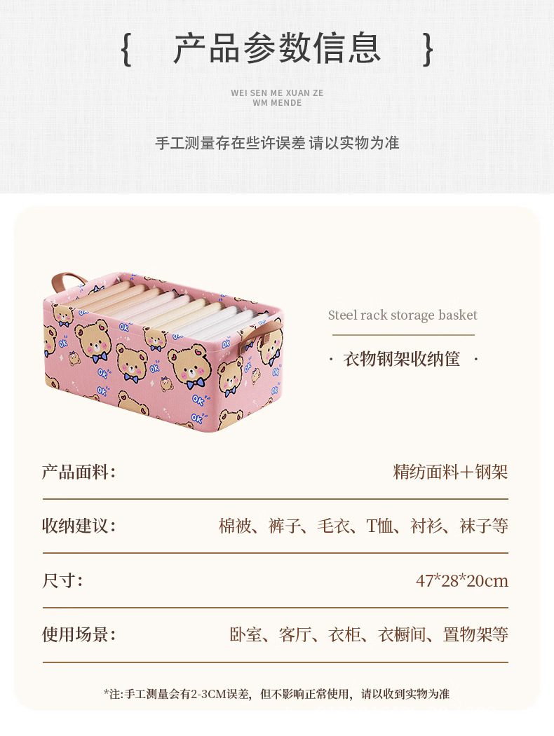 만화 캐릭터 의류 수납함, 가정용 천 소재 어린이 바지 보관함, 다용도 정리함, 수납 바구니, 옷장
