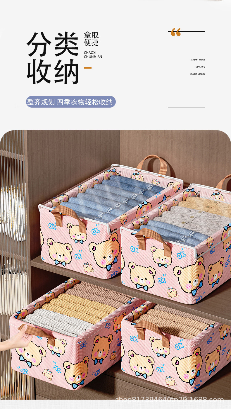 만화 캐릭터 의류 수납함, 가정용 천 소재 어린이 바지 보관함, 다용도 정리함, 수납 바구니, 옷장스토어 가기