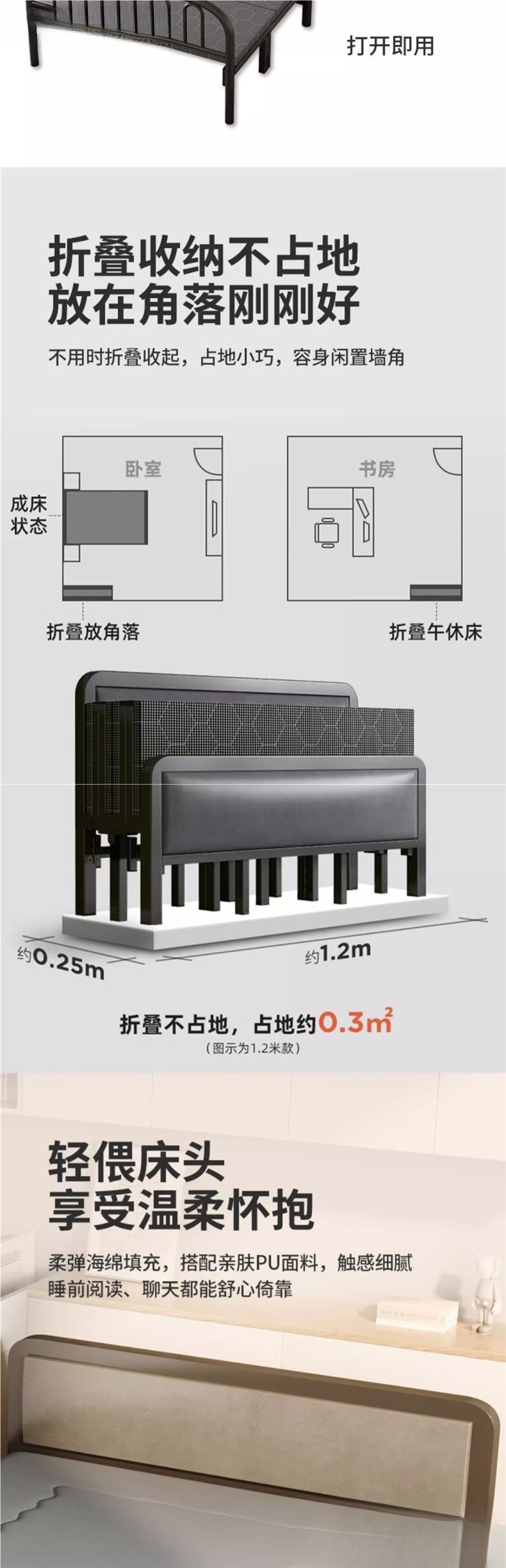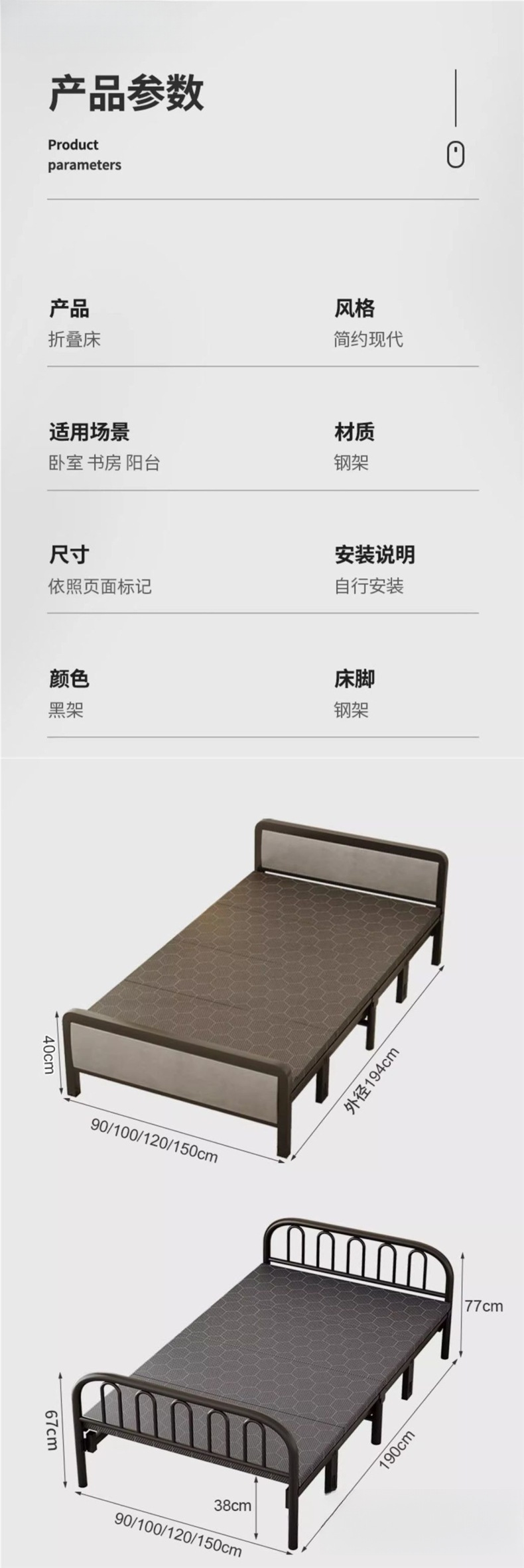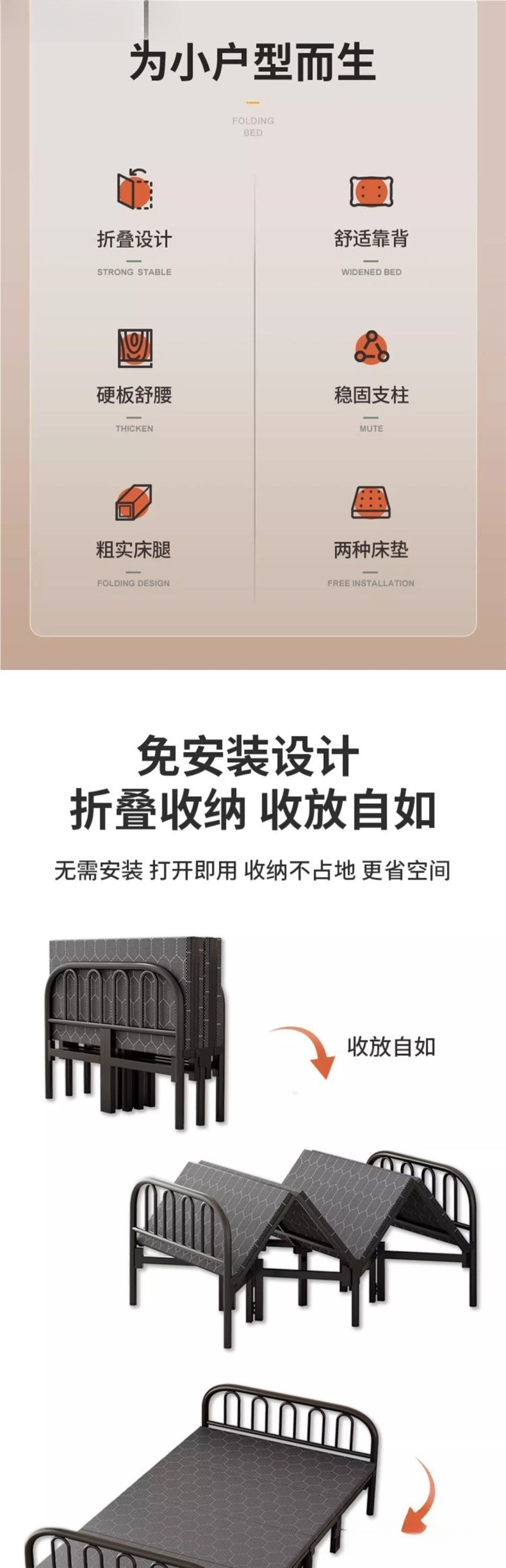 접이식 침대, 가정용 더블 침대, 임대 주택, 점심 시간 및 낮잠, 간단하고 휴대 가능한 성인 철제 침대, 튼튼하고 내구성이 뛰어난 싱글 침대스토어 가기