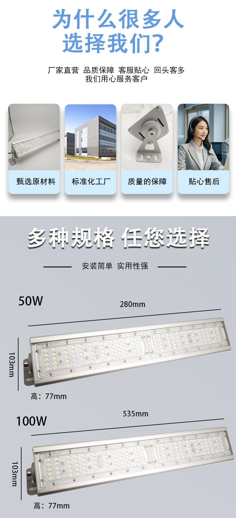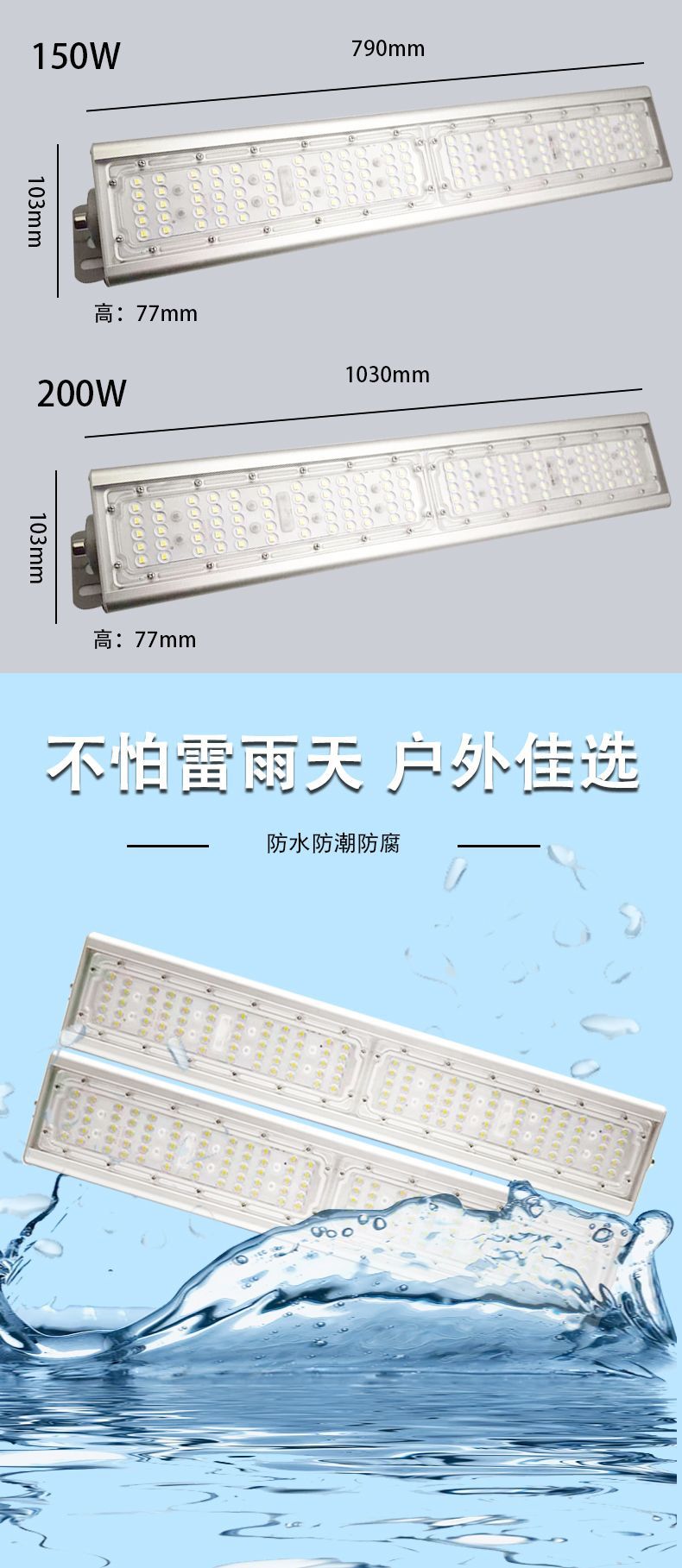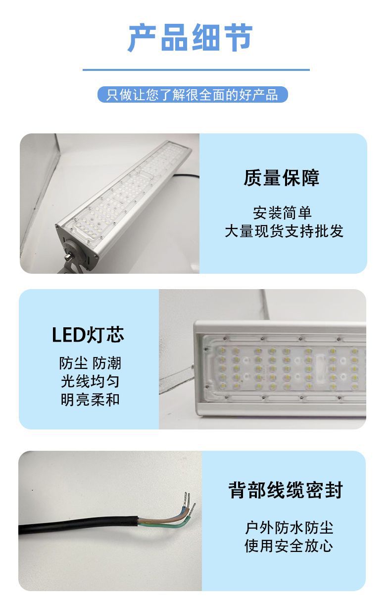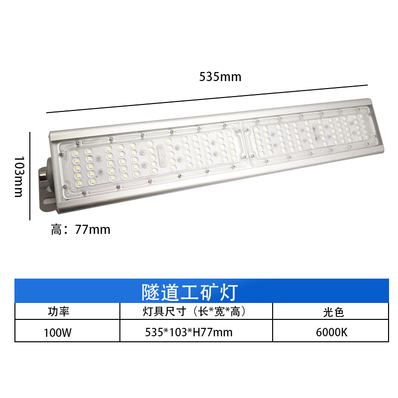 LED 터널 조명 투광 조명 200W 고휘도 고출력 라인 조명 야외 방수 창고 광장 조명
