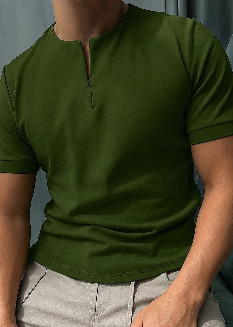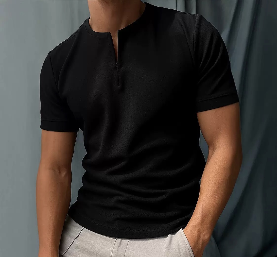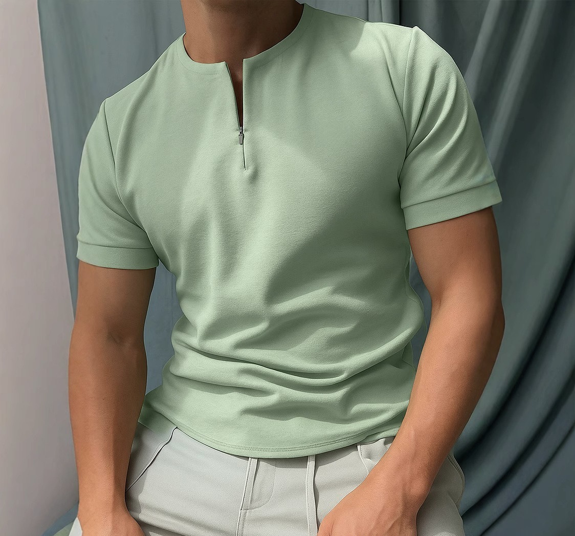 국경 간 2025 유럽과 미국 봄 여름 AliExpress Amazon 새로운 단순 솔리드 컬러 지퍼 반팔 남성 티셔츠 탑