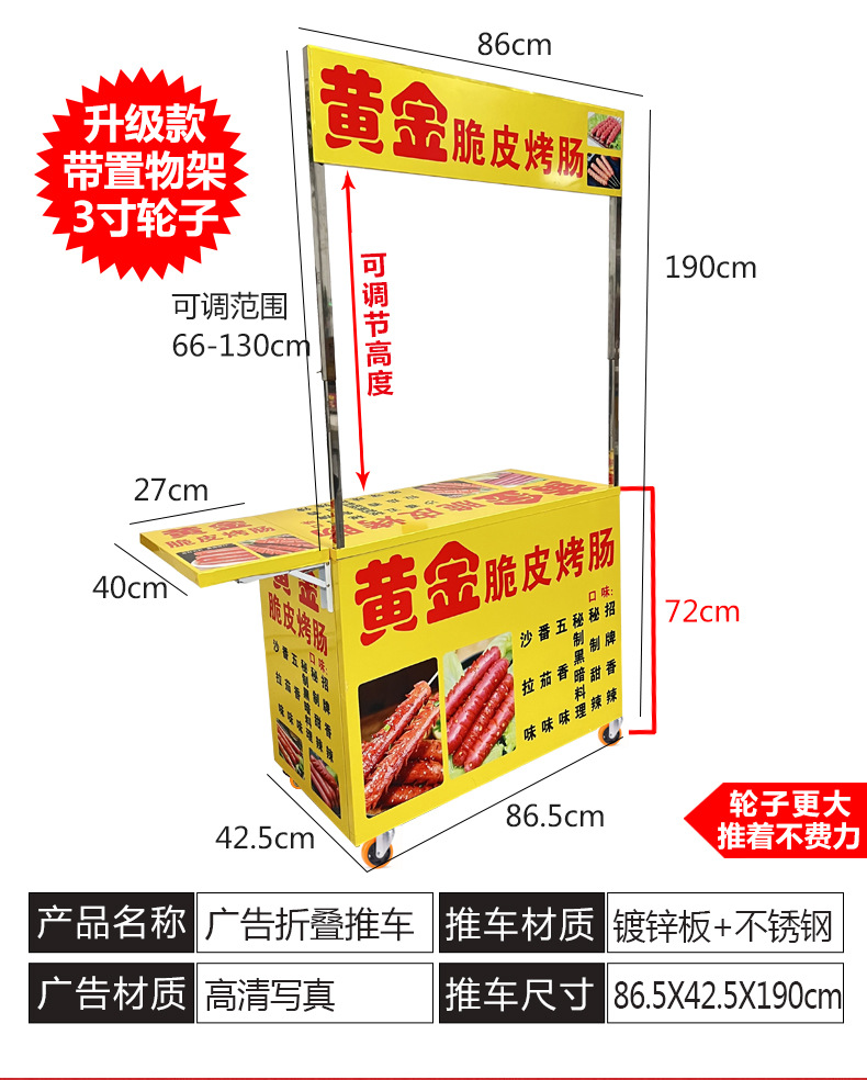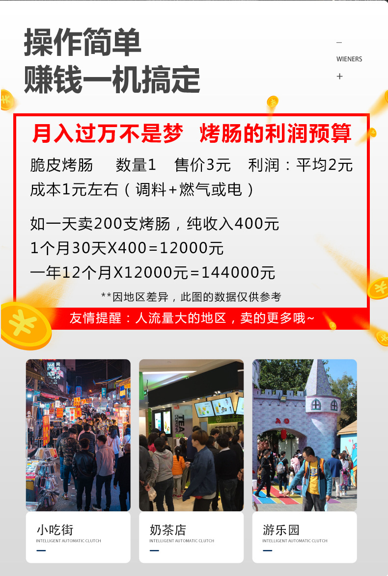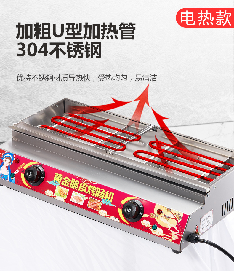 바삭바삭한 소시지 구이 기계, 가스 상업용 매점 장비, 야시장 특수 트롤리, 새로운 전분 소시지 노점 구이 기계