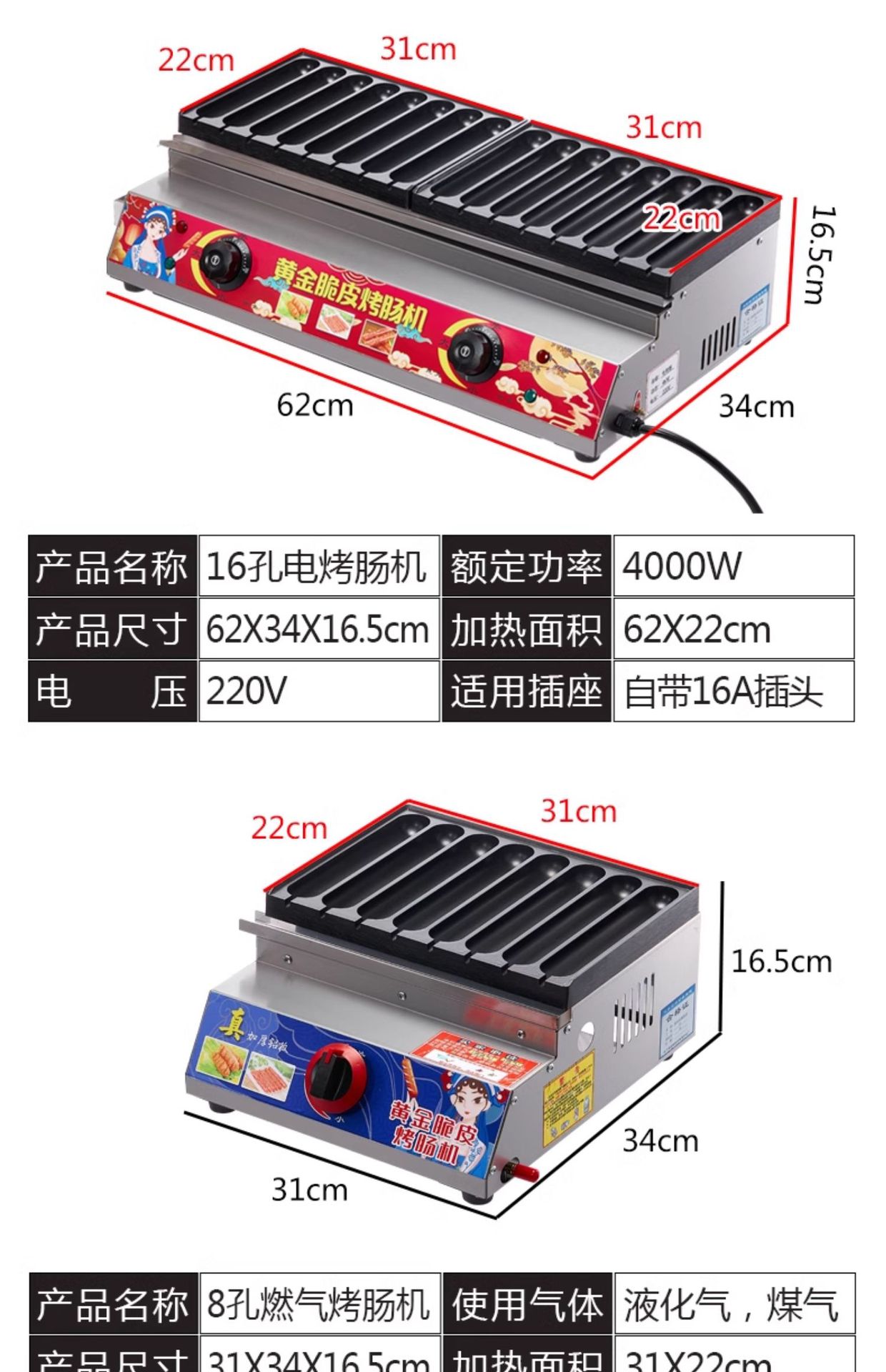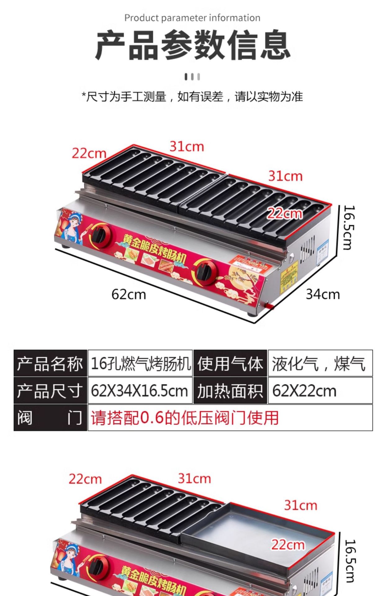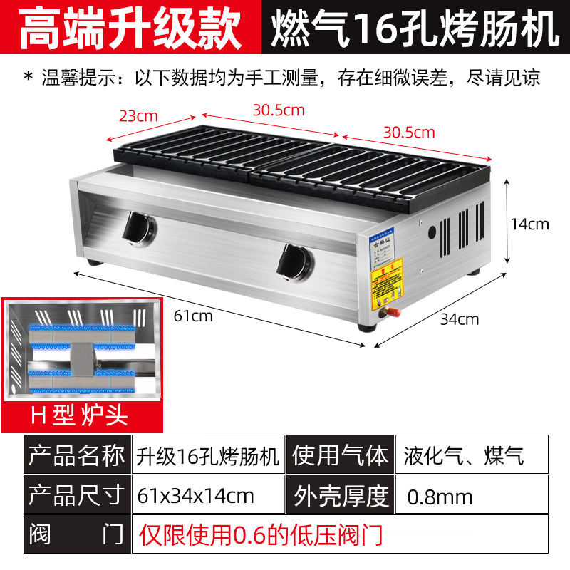 • 고급스러운 가스 16구 소시지 그릴(두꺼운 소시지 플레이트 + H형 버너) SF Express