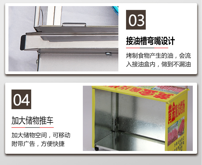 • 카트 모델 A + 가스 16홀 소시지 그릴(외부 오일 탱크)