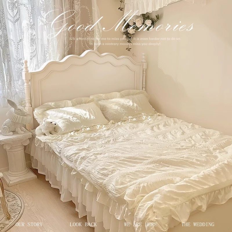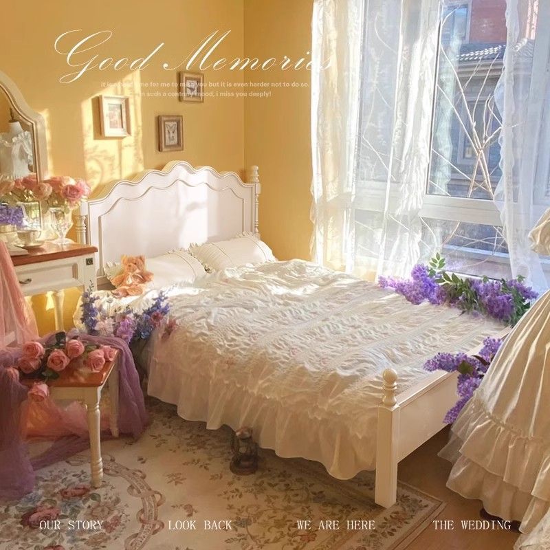 [인 컬렉션] 프렌치 원목 침대 화이트 모던 심플 크림 스타일 공주 침대 마스터 침실..