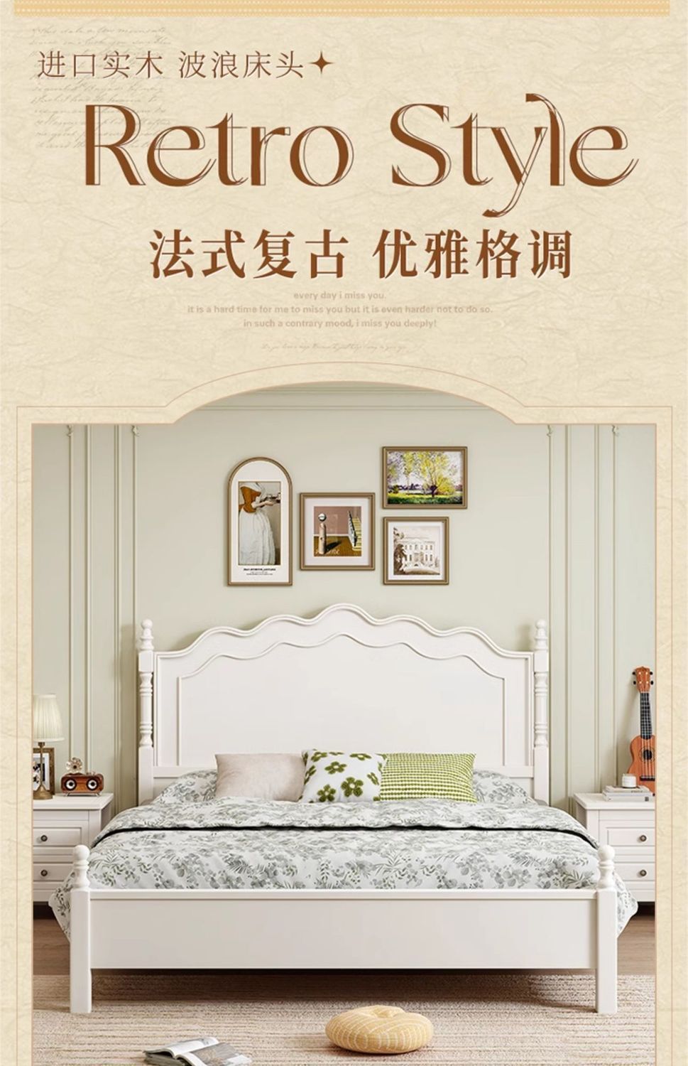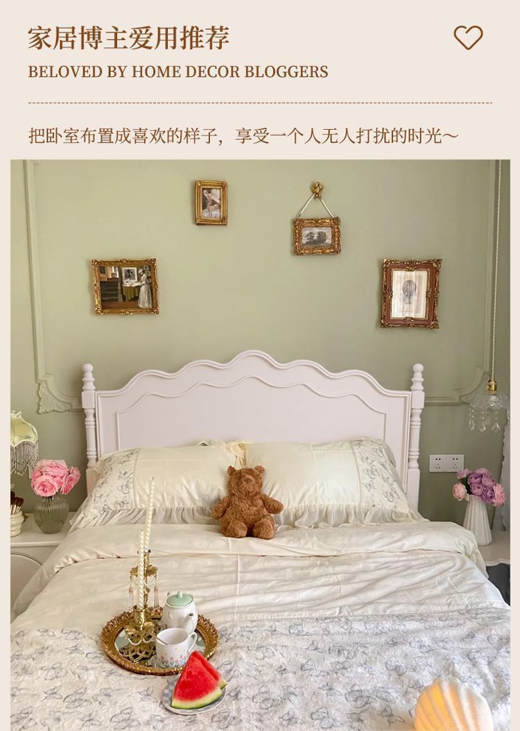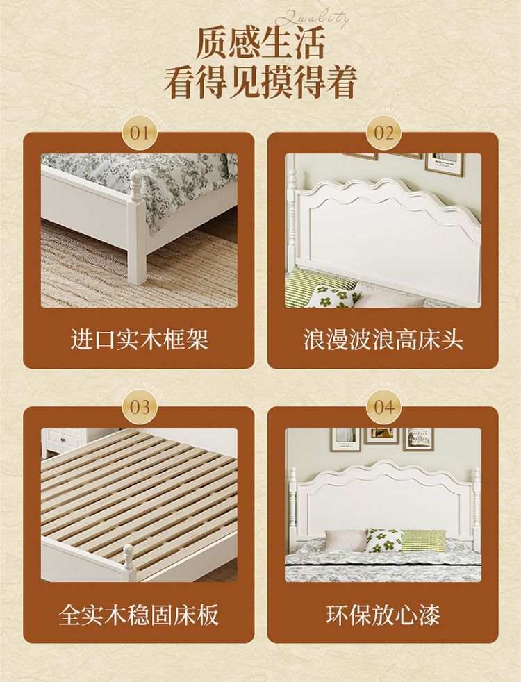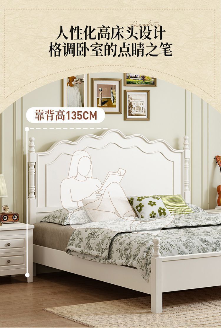 [인 컬렉션] 프렌치 원목 침대 화이트 모던 심플 크림 스타일 공주 침대 마스터 침실..스토어 가기