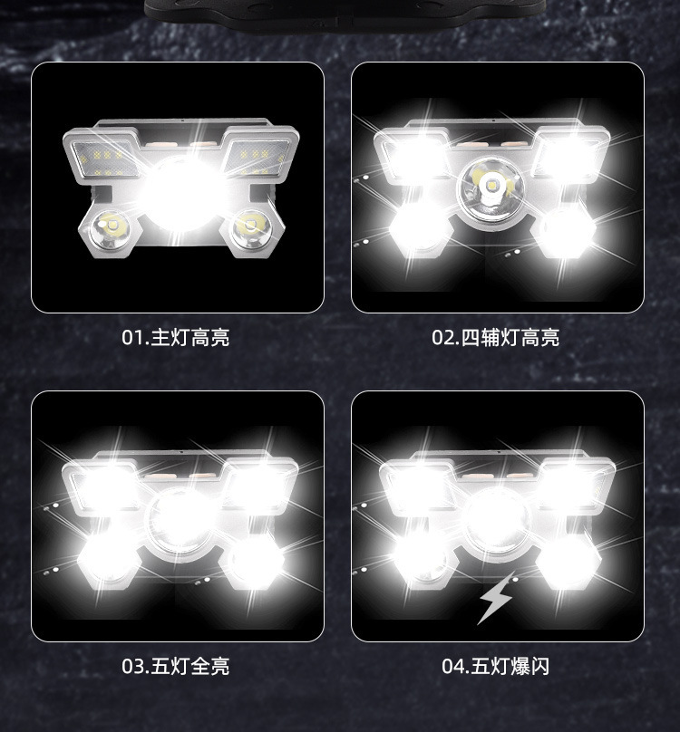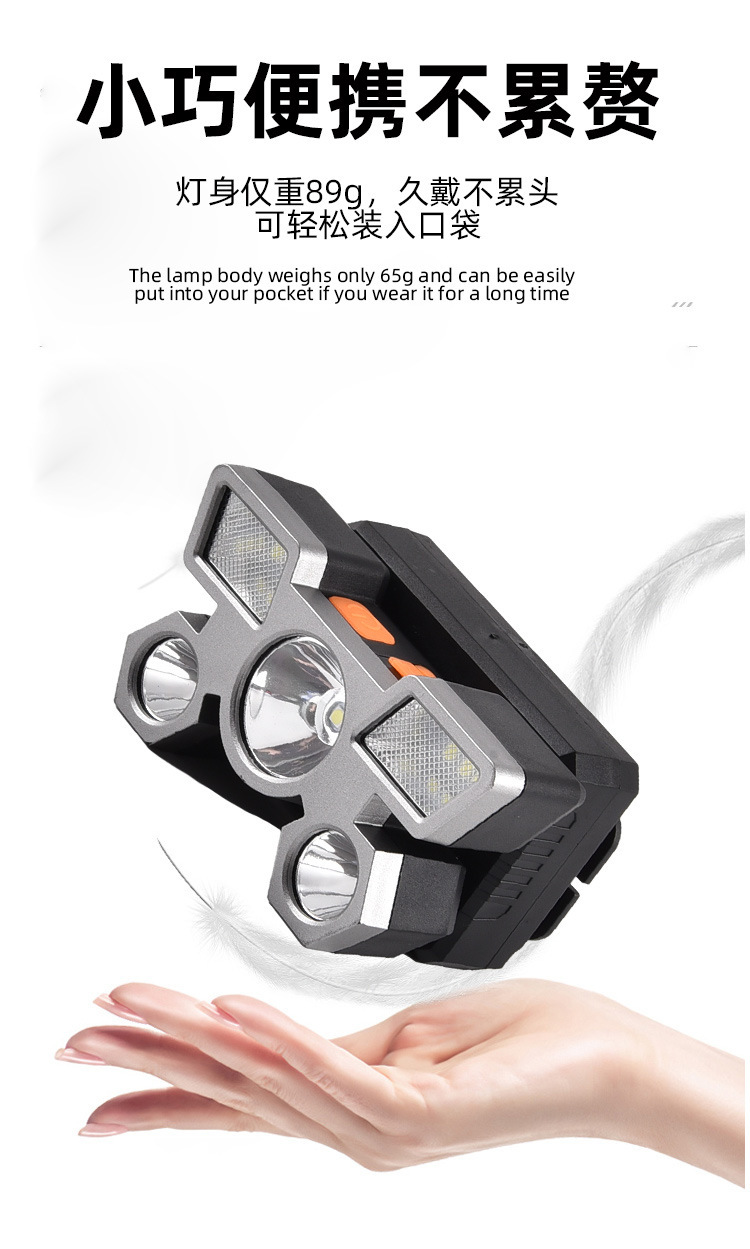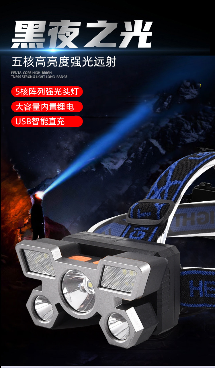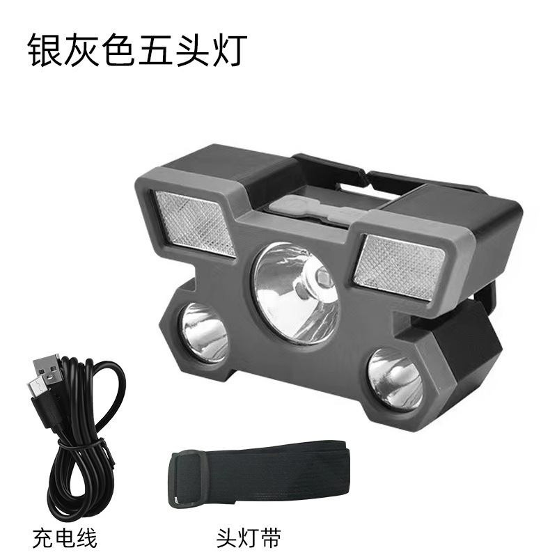 • T5 - 5구 헤드랜턴 소형 [실버] + 헤드랜턴 밴드 + 컬러 박스 포장 + 충전 케이블