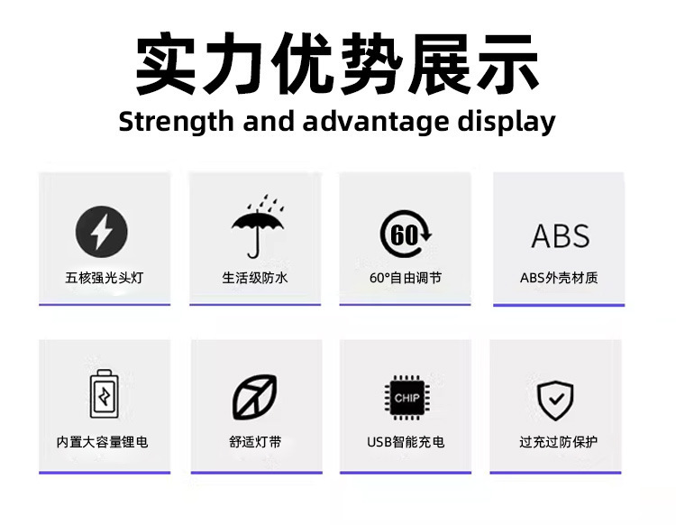 국경을 넘는 야외용 강력 헤드램프, 긴 배터리 수명의 리튬 배터리 헤드 장착형 강력 광원 광산등, 높은 루멘의 야외 등산 및 바다 탐험용 램프