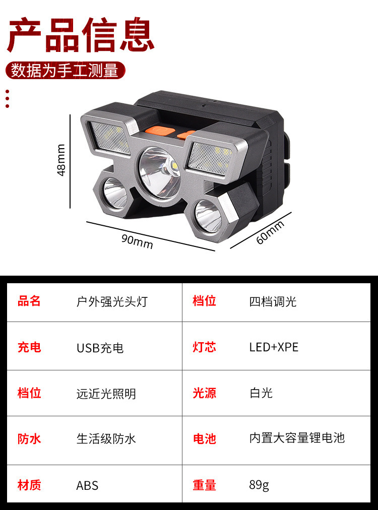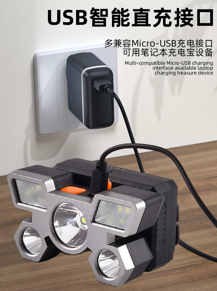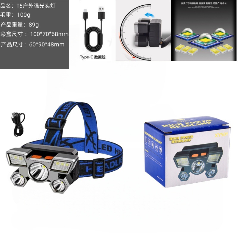 • T5--5개 헤드라이트[골드] + 컬러박스 + 충전 케이블