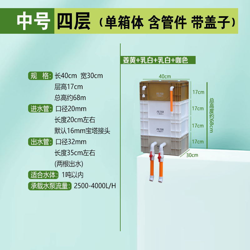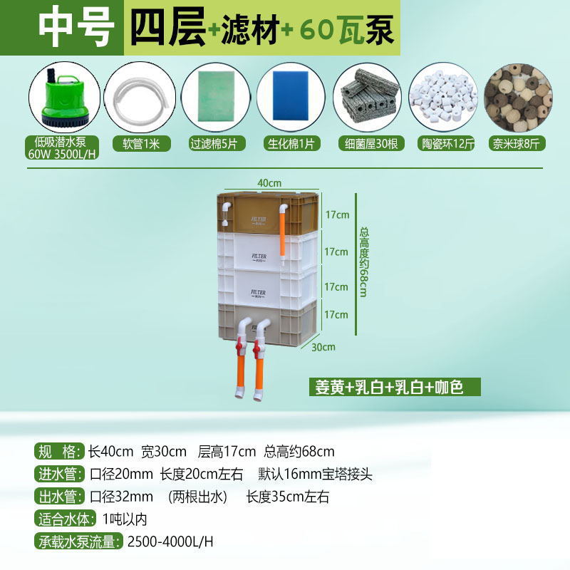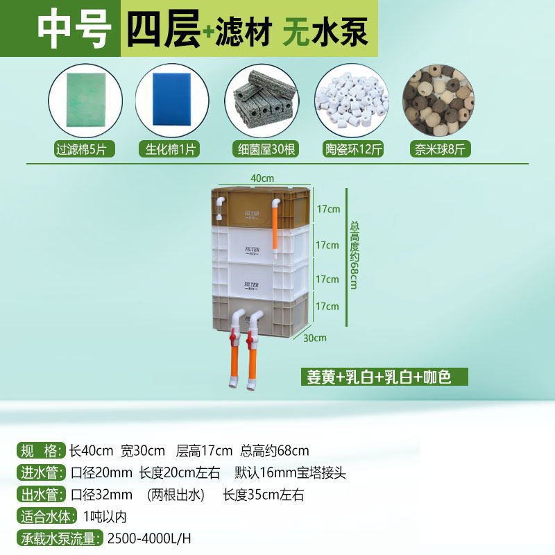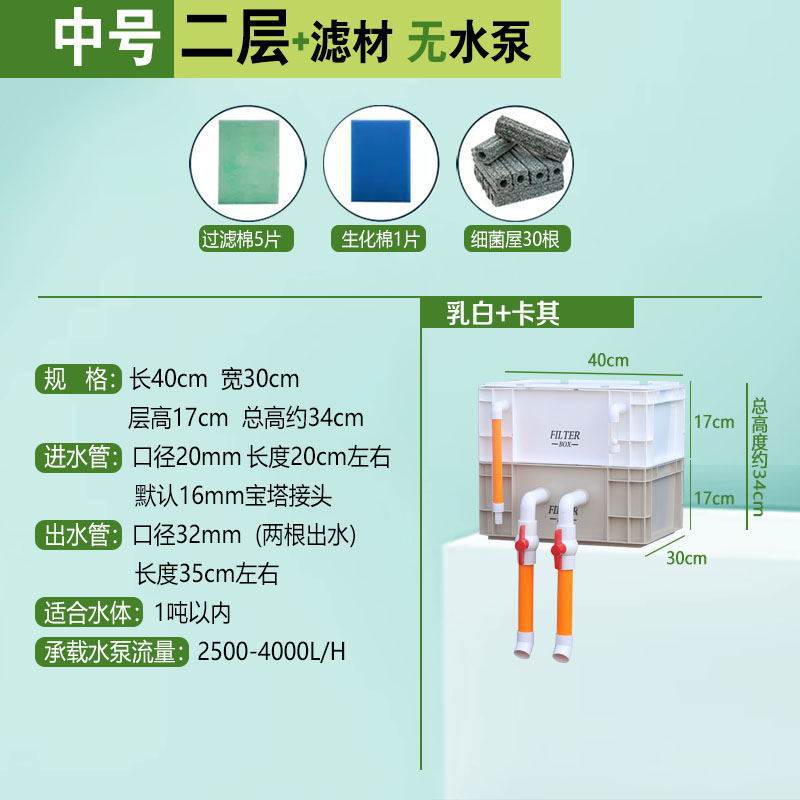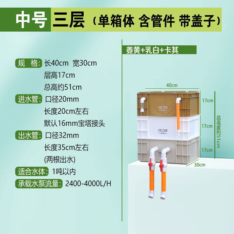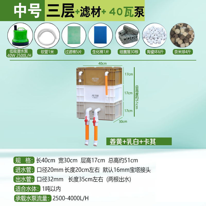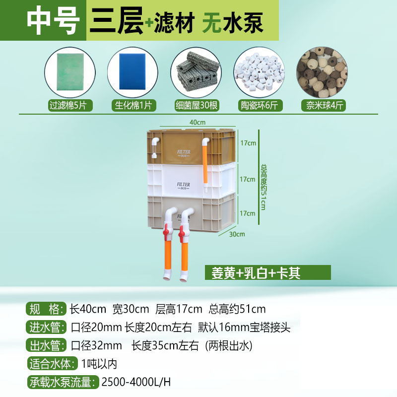 • 강황 밀키 화이트 카키 뉴 산업 스타일 중형 3층 + 필터 재료 + 40와트 펌프