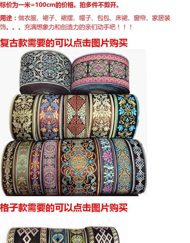 두꺼운 측면 스트립, 민족 레이스 의류 액세서리, 스커트 소매, 중국식 베개, 커튼 장식, 자카드 리본스토어 가기