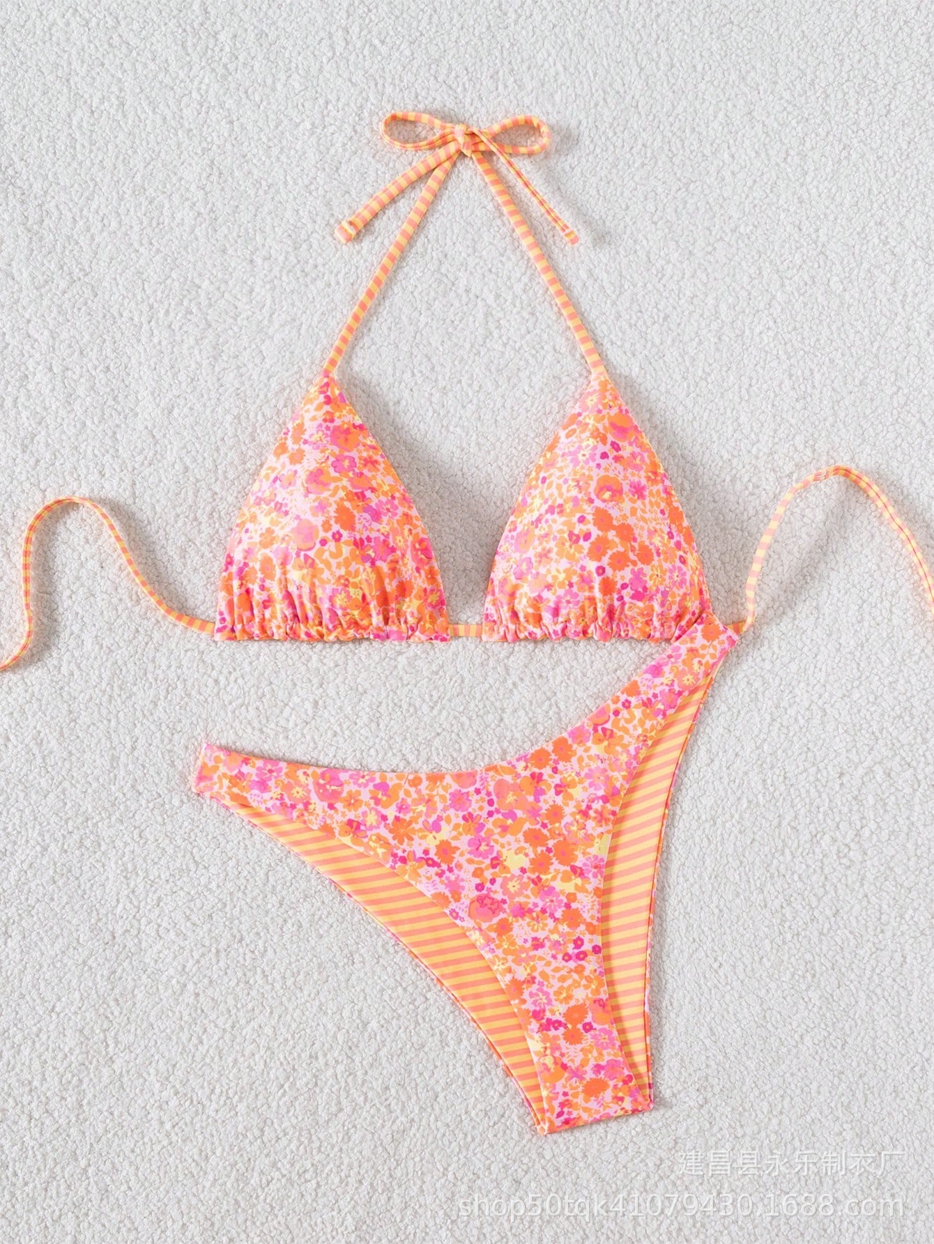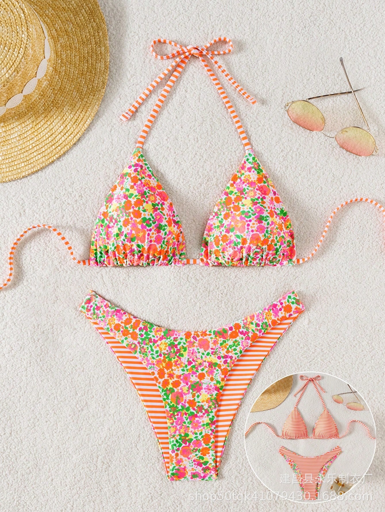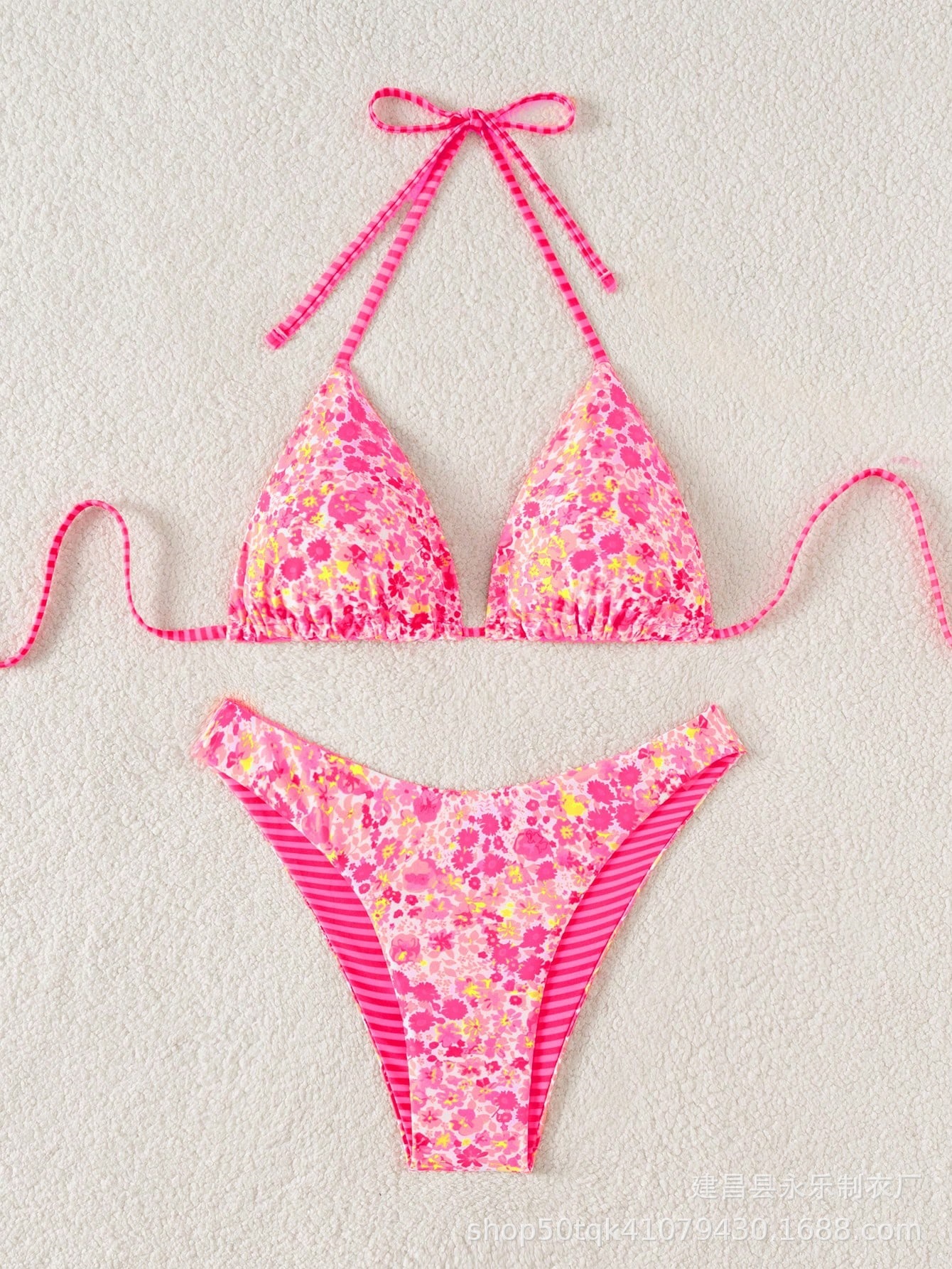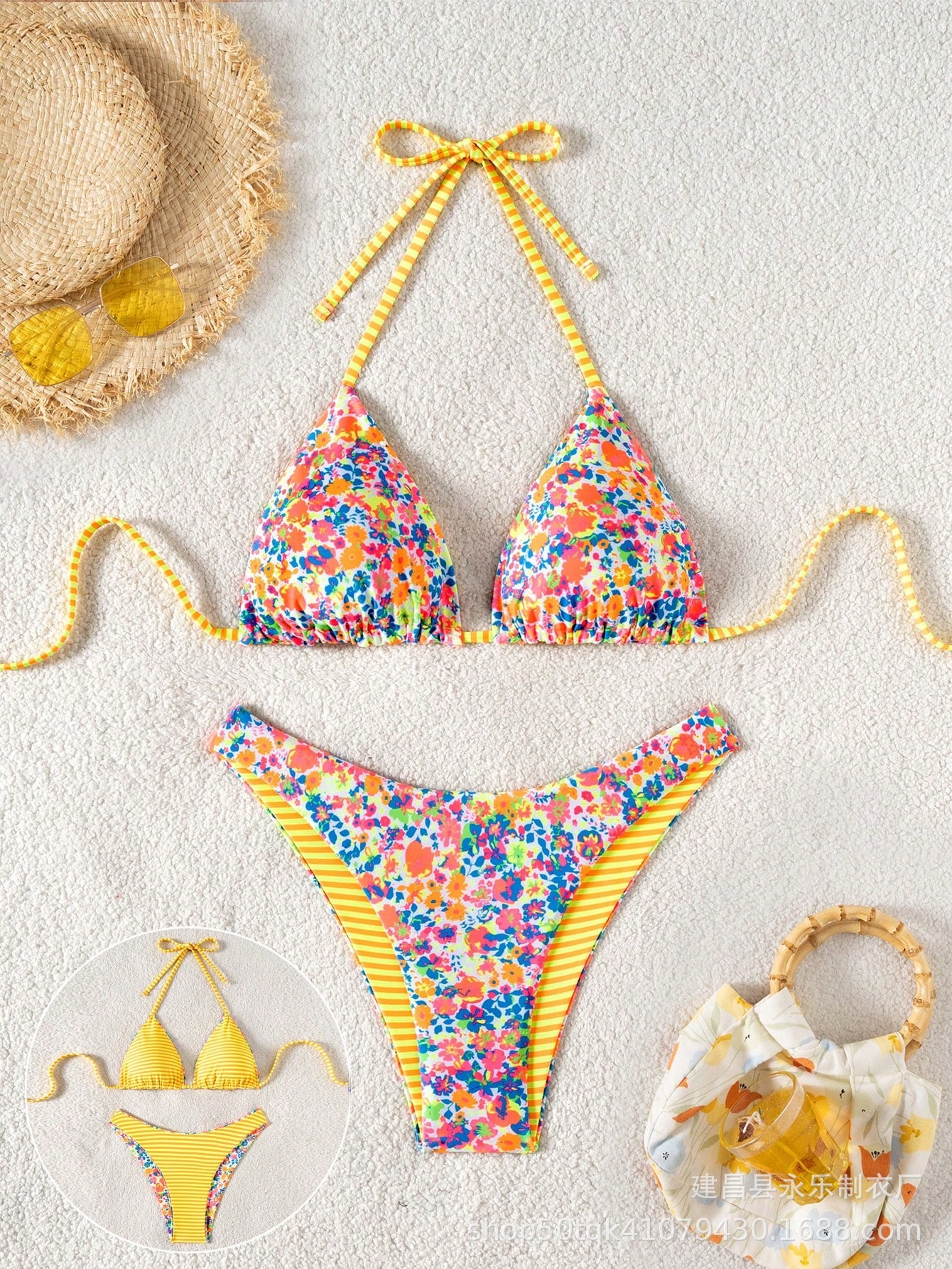 대외 무역 2025 유럽과 미국의 새로운 섹시한 프린트 양면 수영복 수영복 여성 스플릿 비키니 세트 크로스보더스토어 가기