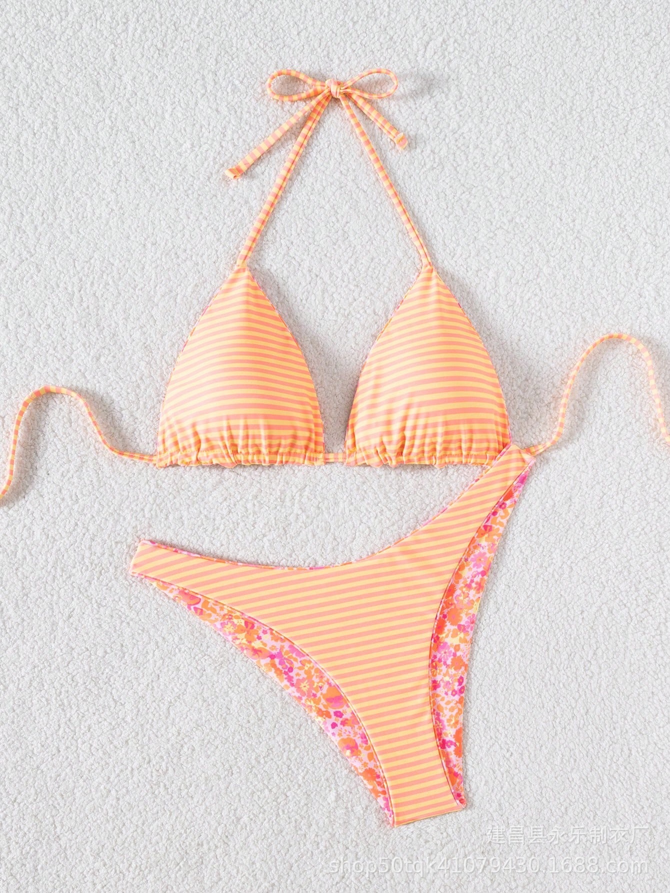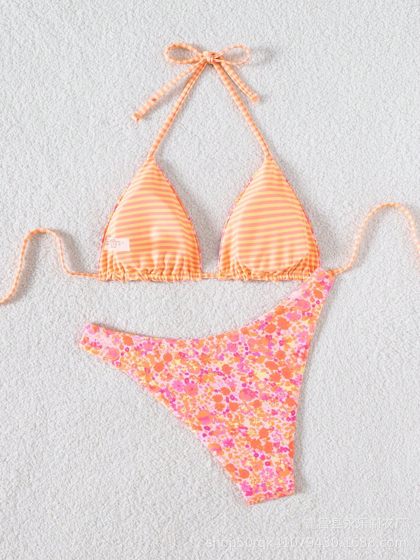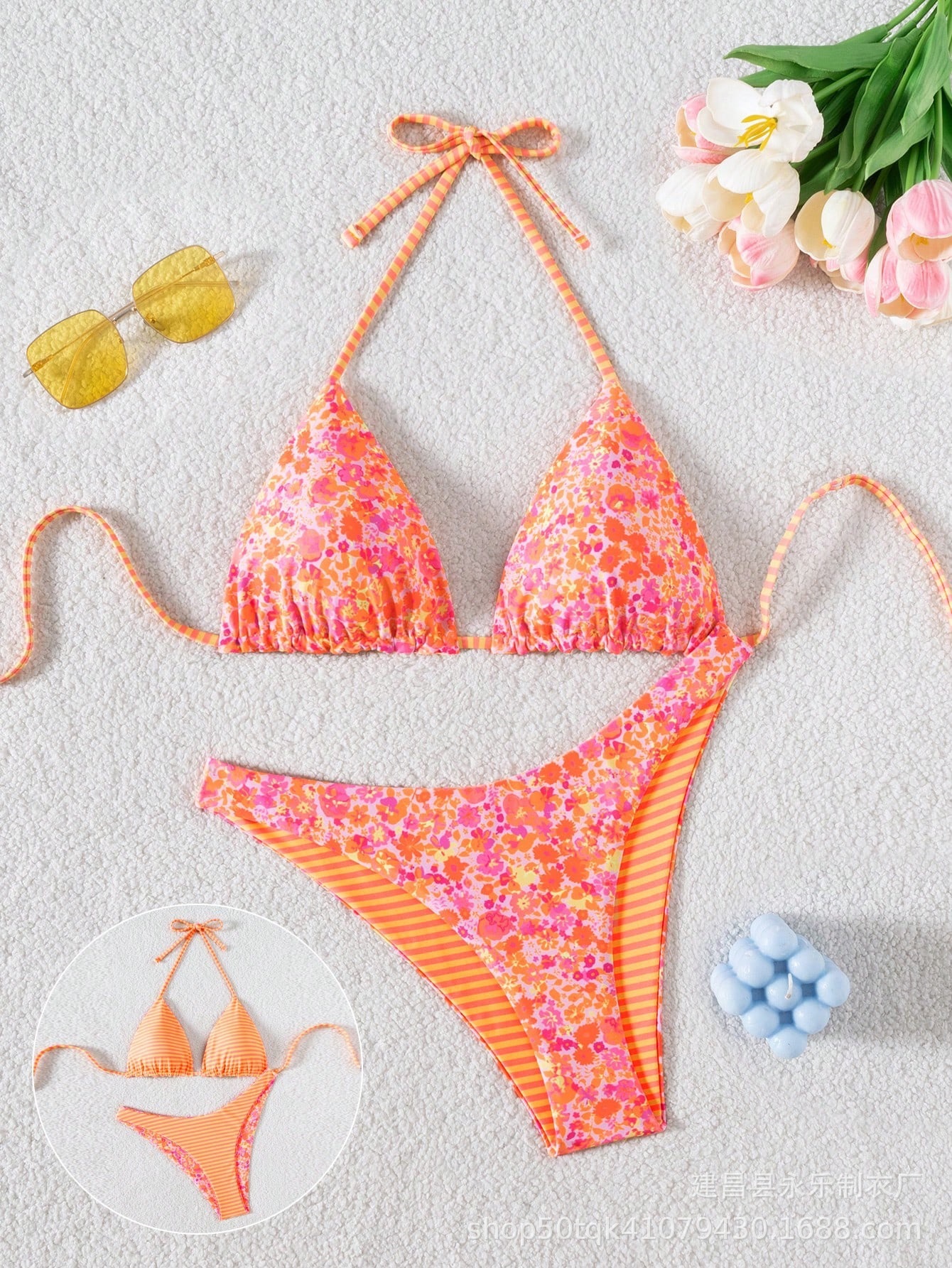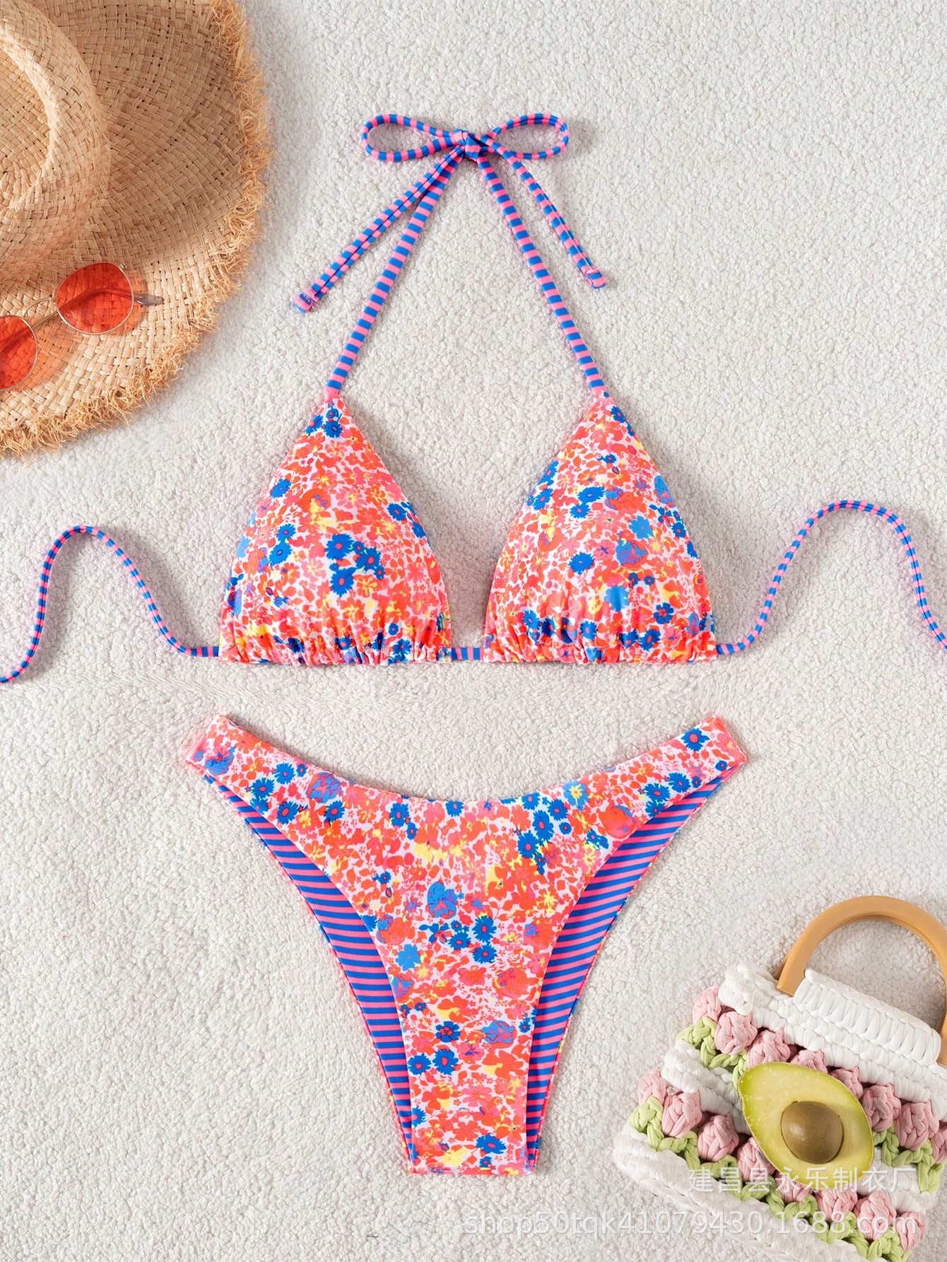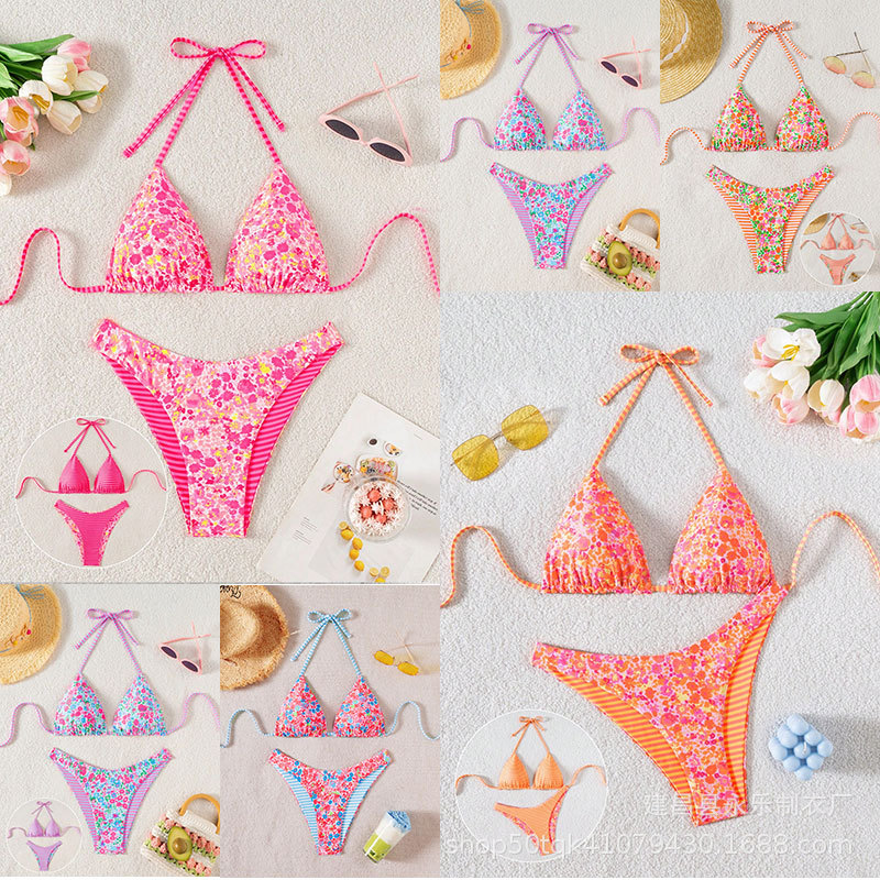 대외 무역 2025 유럽과 미국의 새로운 섹시한 프린트 양면 수영복 수영복 여성 스플릿 비키니 세트 크로스보더스토어 가기