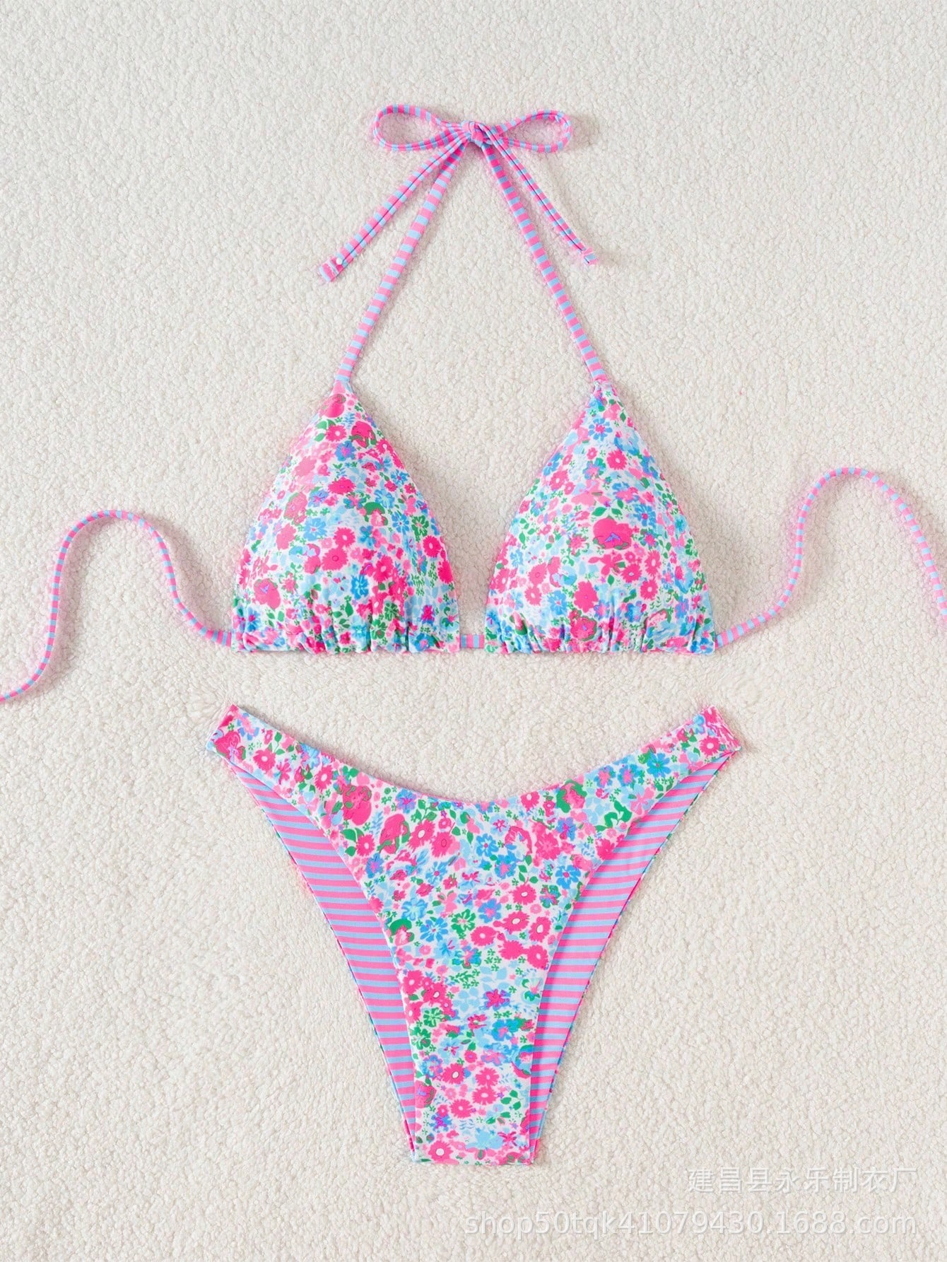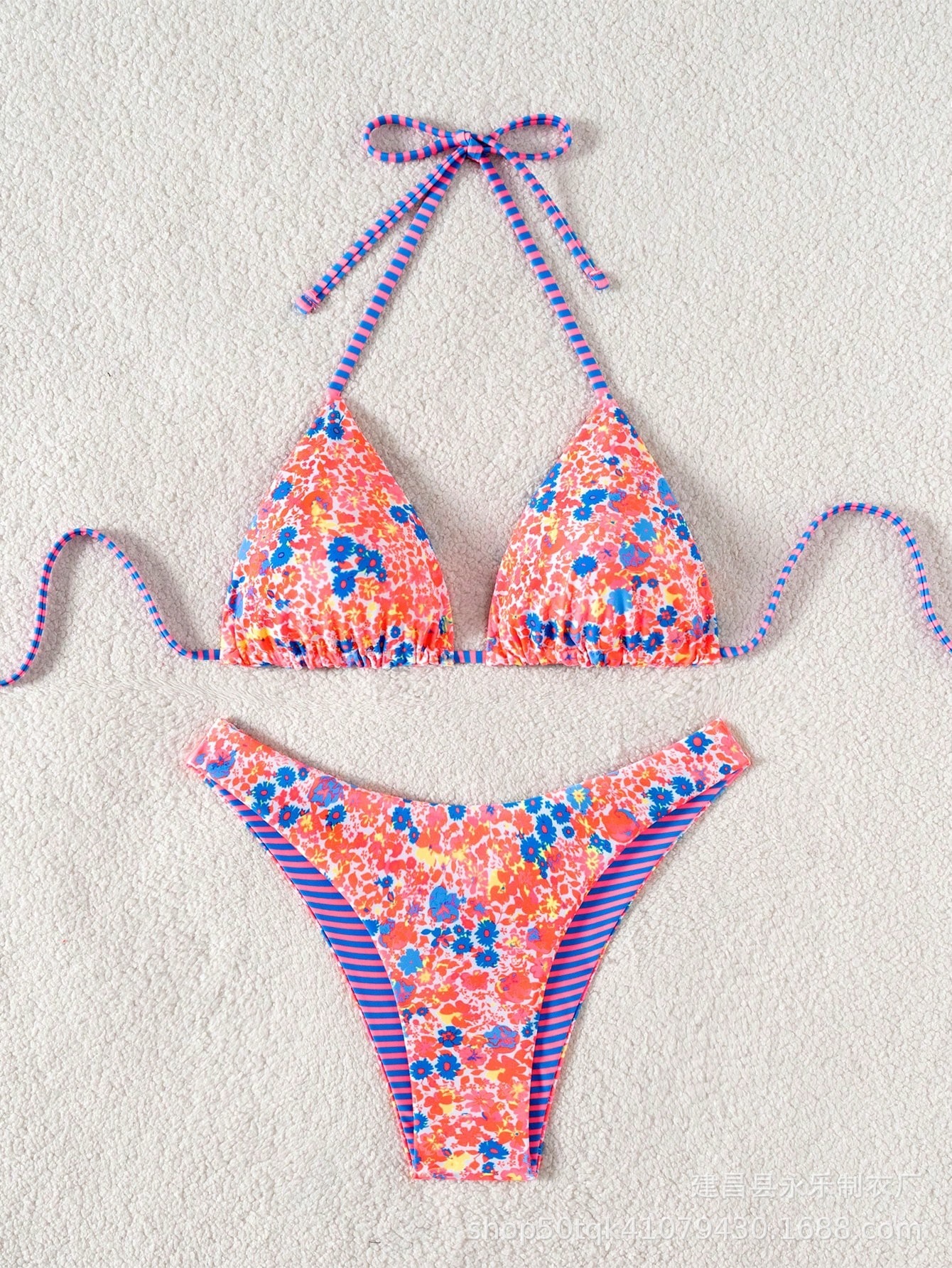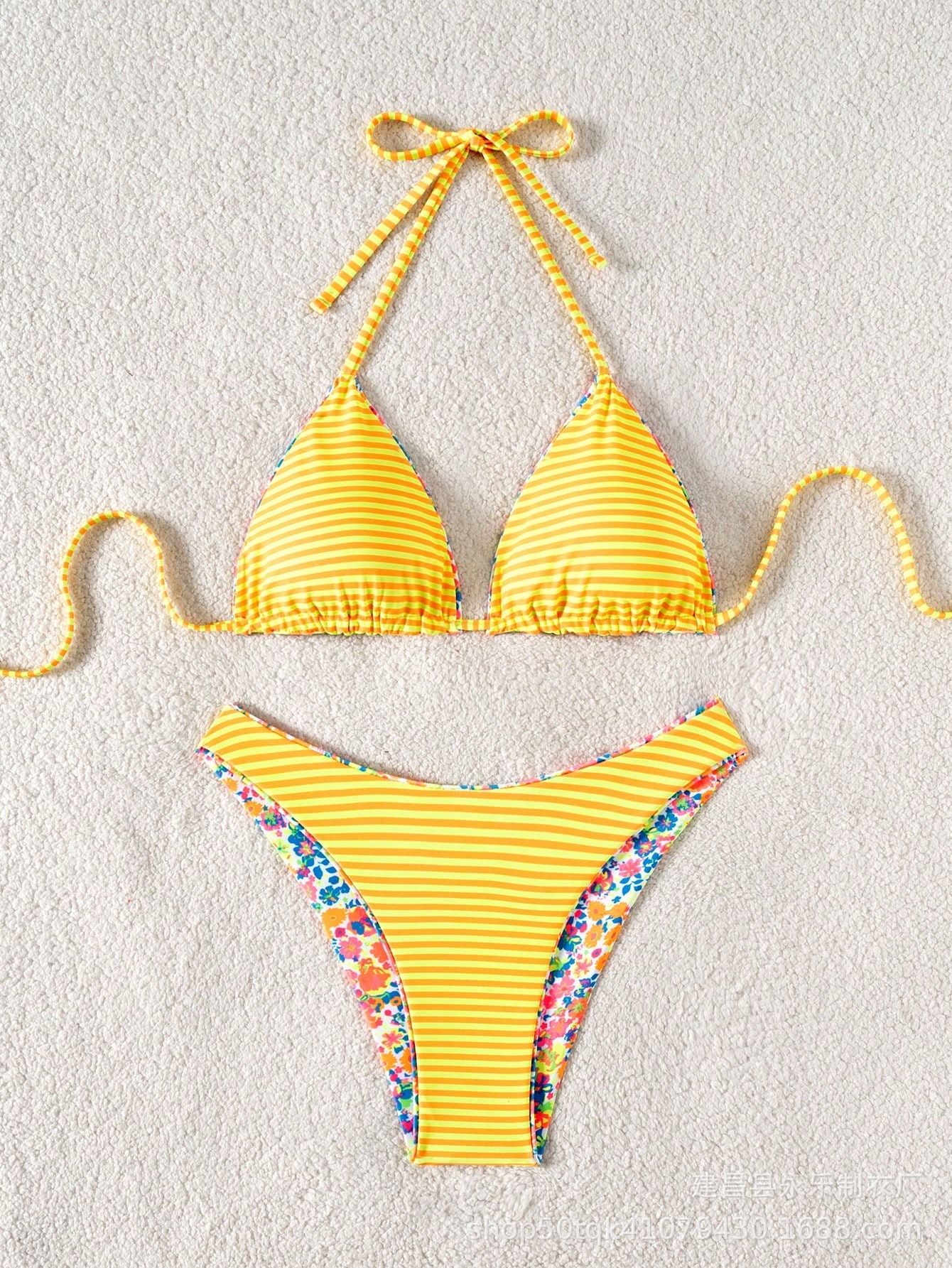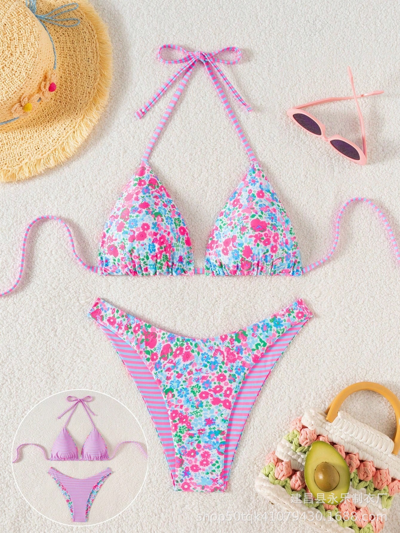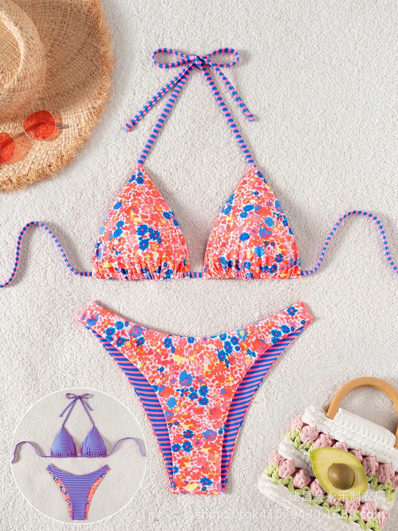 대외 무역 2025 유럽과 미국의 새로운 섹시한 프린트 양면 수영복 수영복 여성 스플릿 비키니 세트 크로스보더