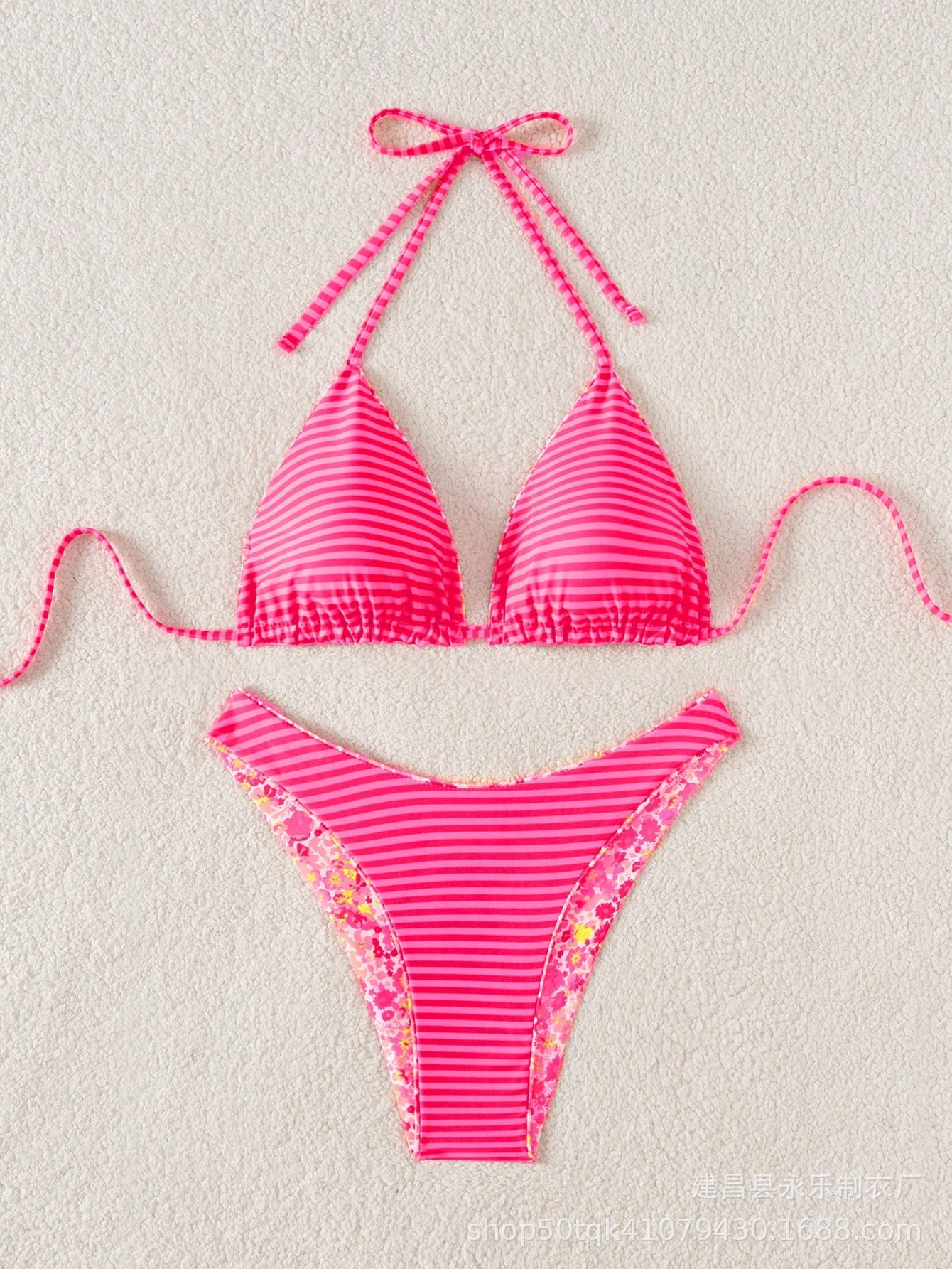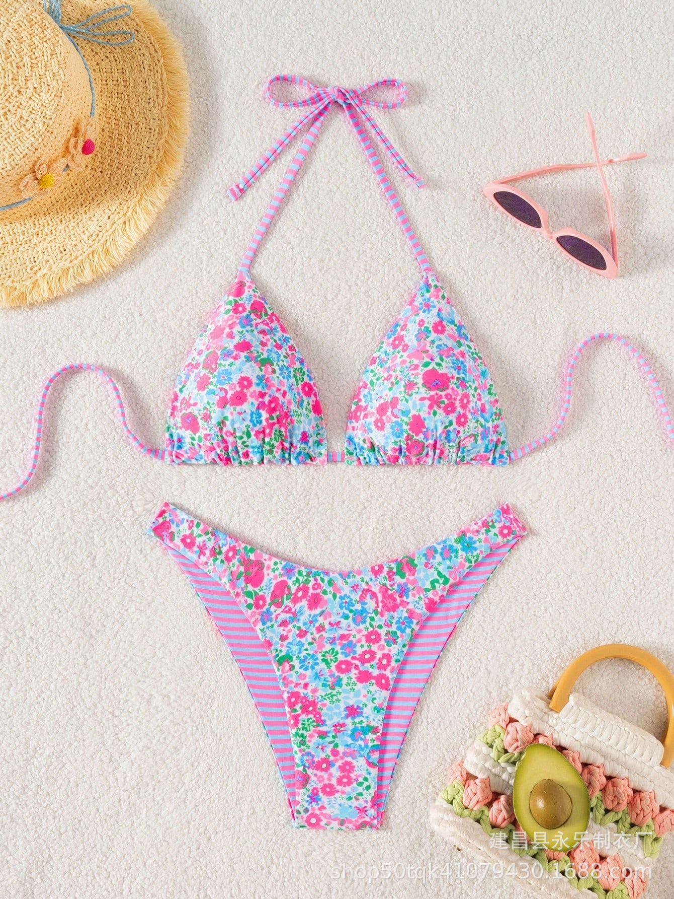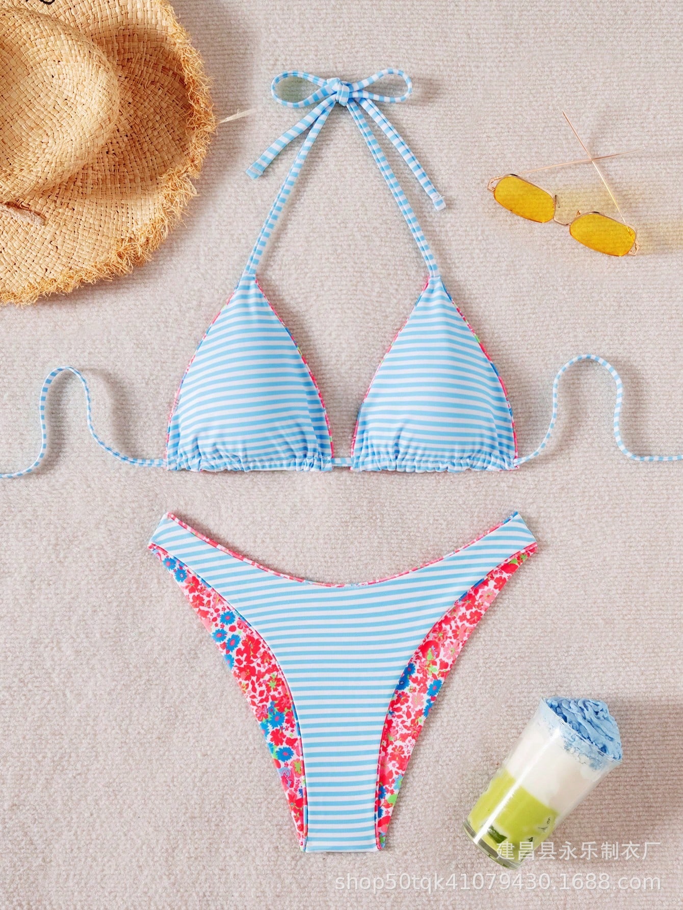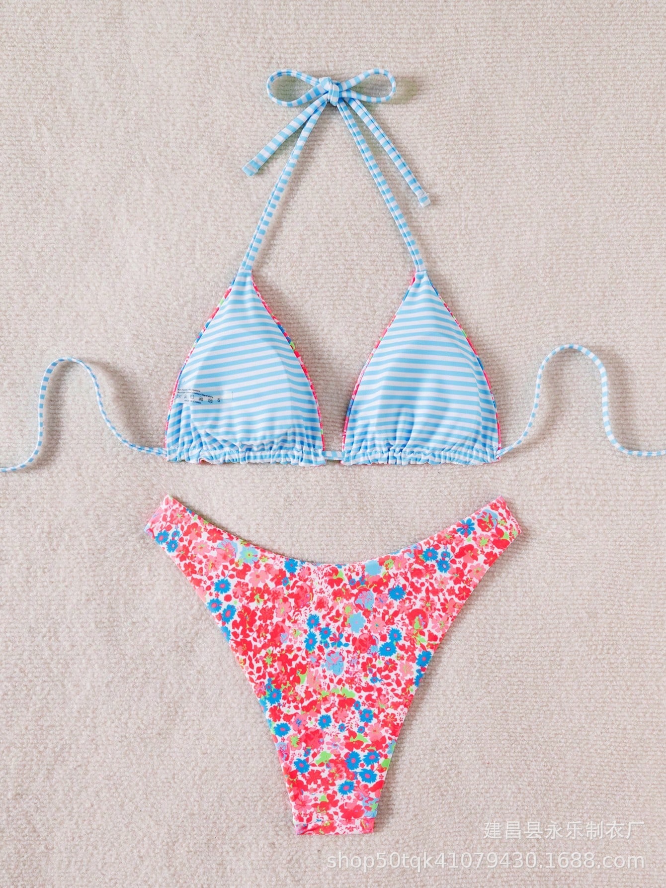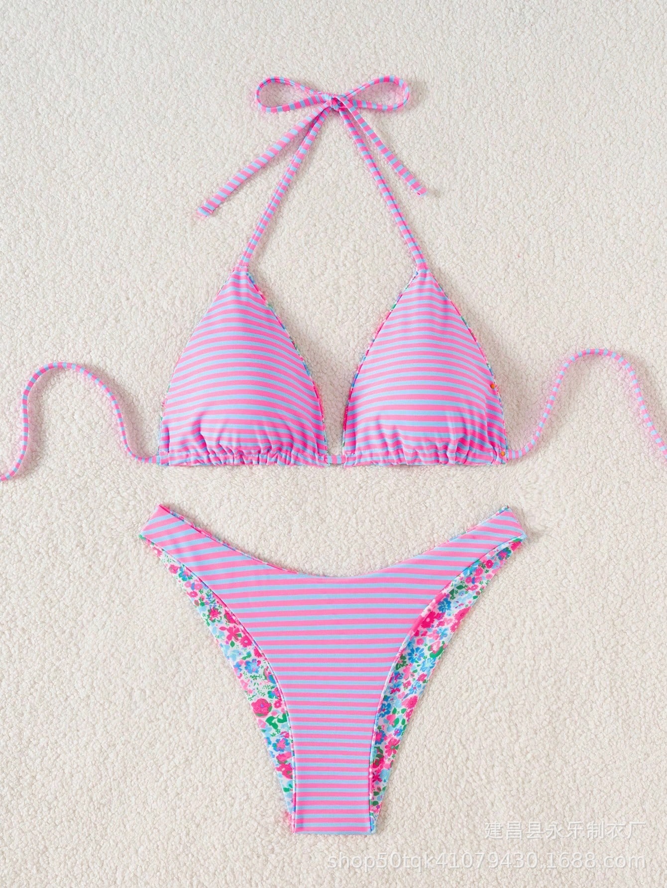 대외 무역 2025 유럽과 미국의 새로운 섹시한 프린트 양면 수영복 수영복 여성 스플릿 비키니 세트 크로스보더
